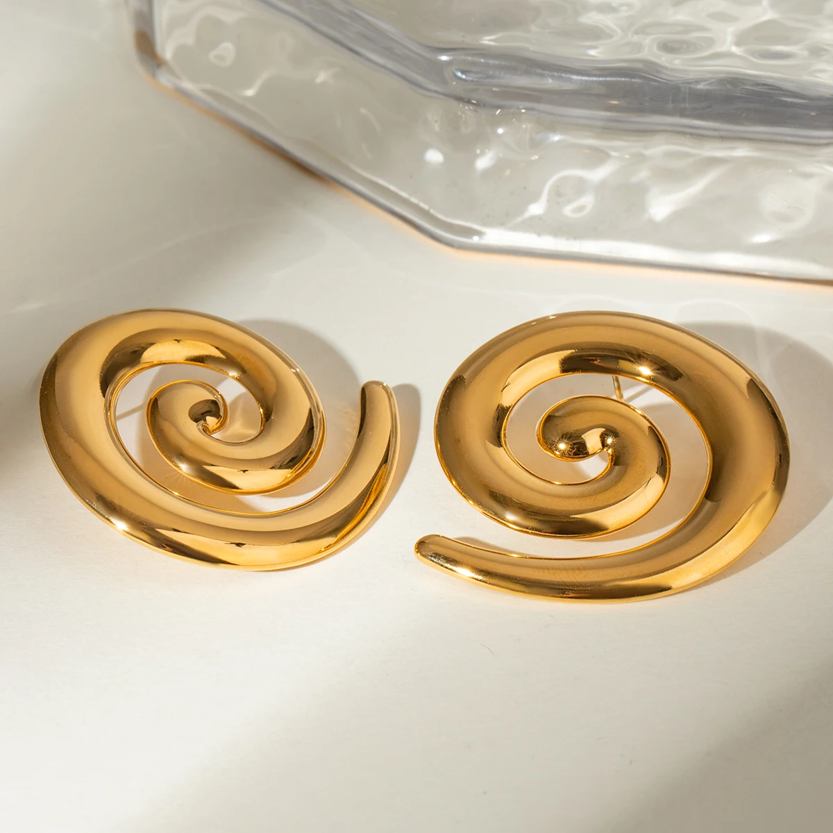18K Gold Plated Stainless Steel Smooth Thread Rotary Earrings Women Charms Metal Texture Waterproof Jewelry Gala Gift