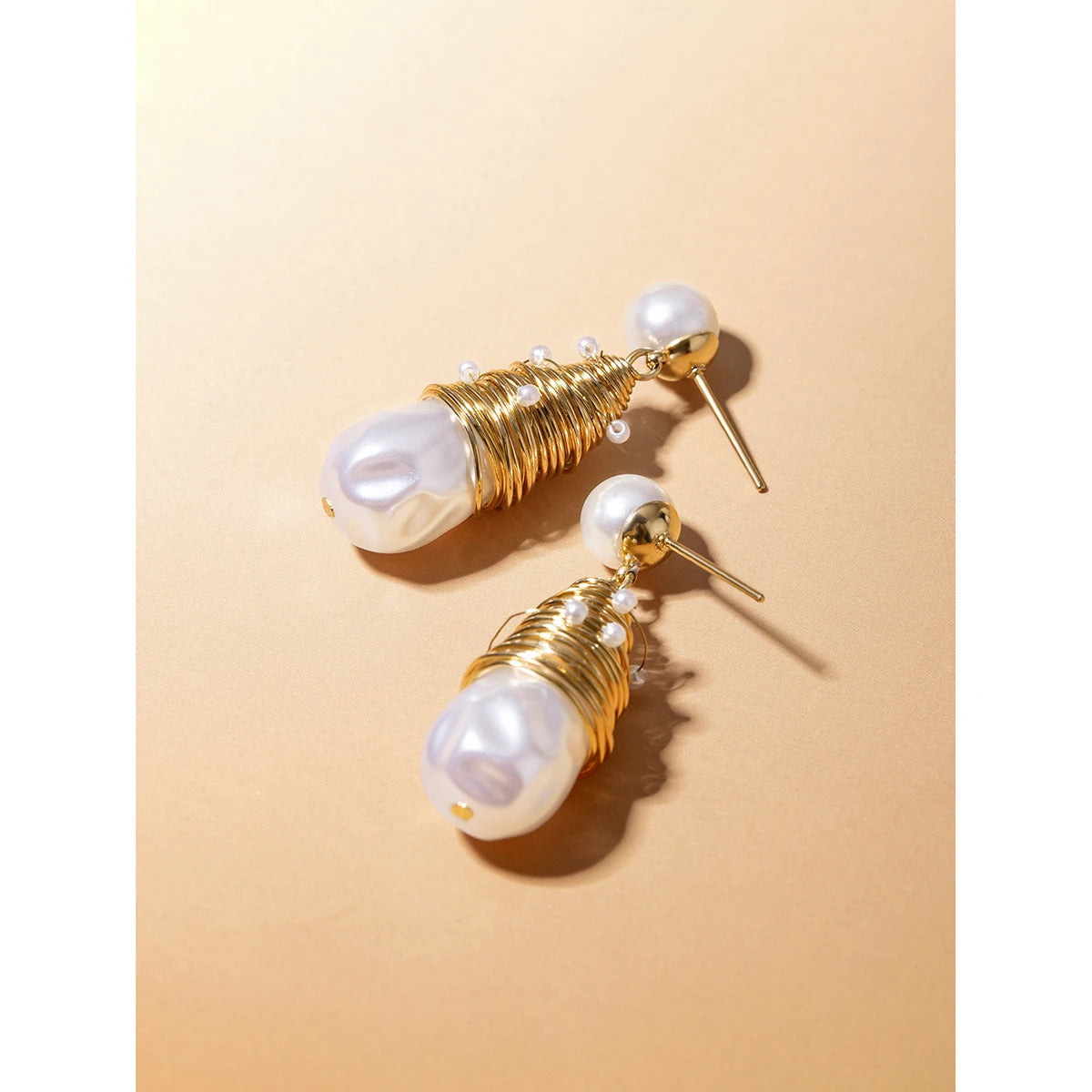 Delicate 18K Gold Plated Stainless Steel Fashion Thread Wrapped Around Pearl Earrings Tarnish-proof Romantic Jewelry Gala Gift