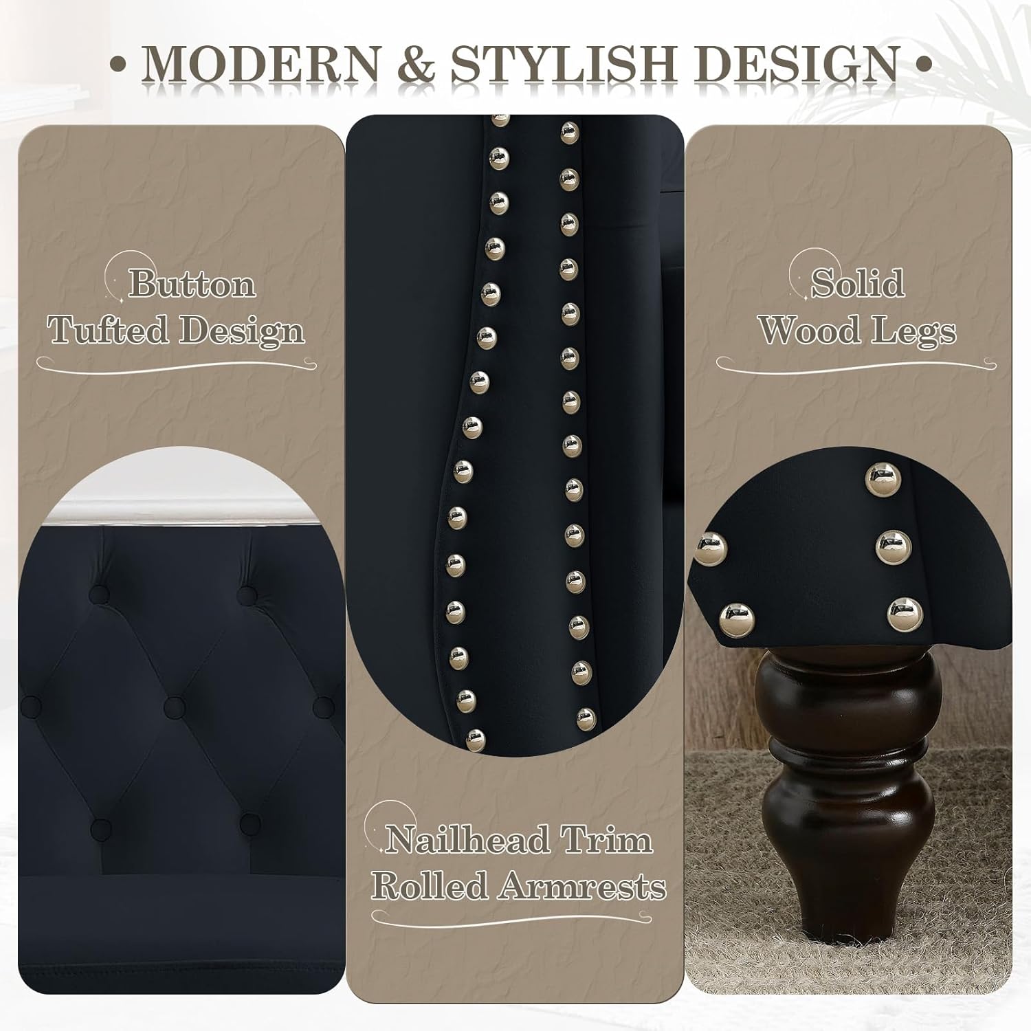 Chesterfield Sofa Couch,80" Button Tufted Velvet Sofa with Rolled Arms&Nailhead Trim,Comfy 3 Seater Sofa,Oversize Mid Century Modern Couch for Living Room,Bedroom,Apartment,Office(Black)