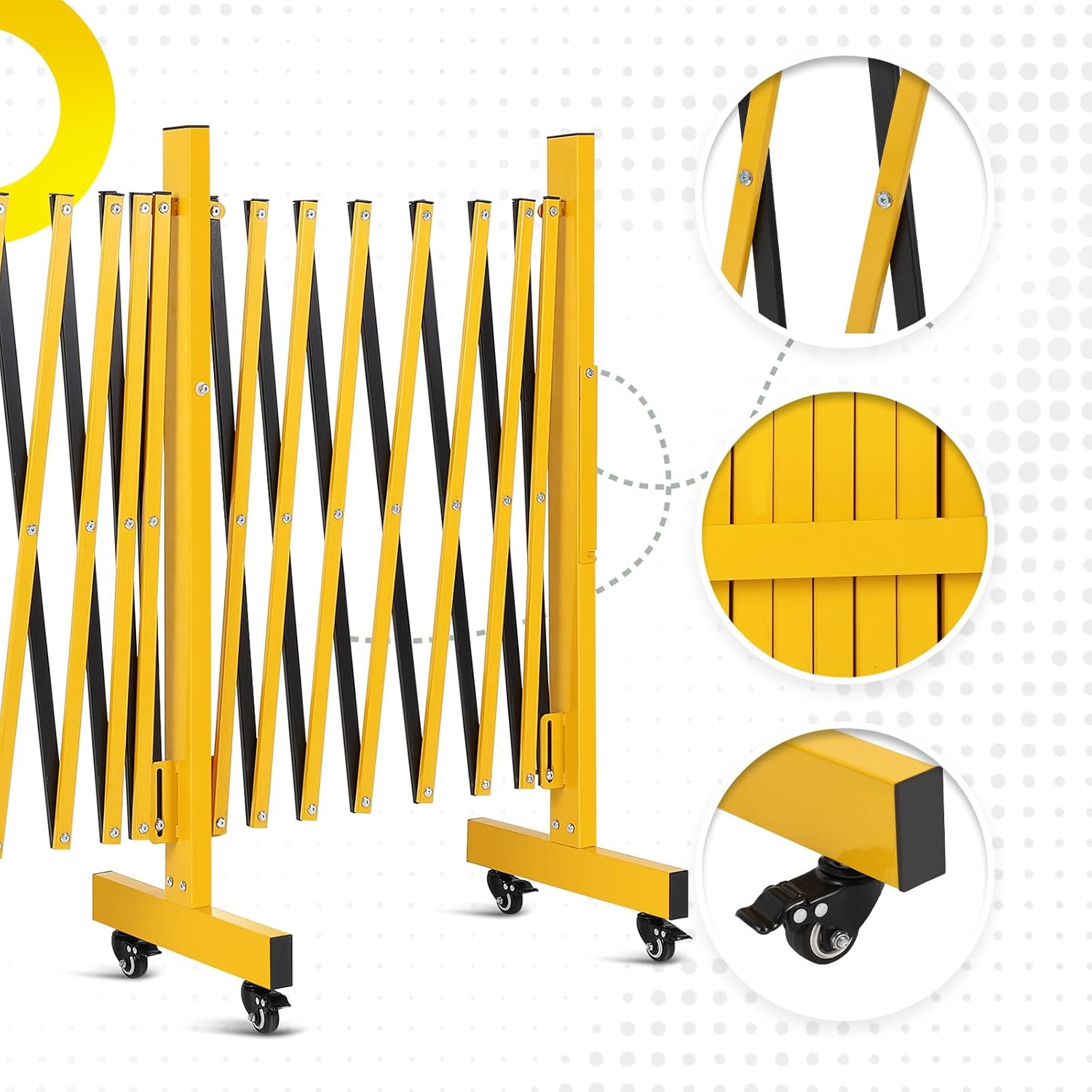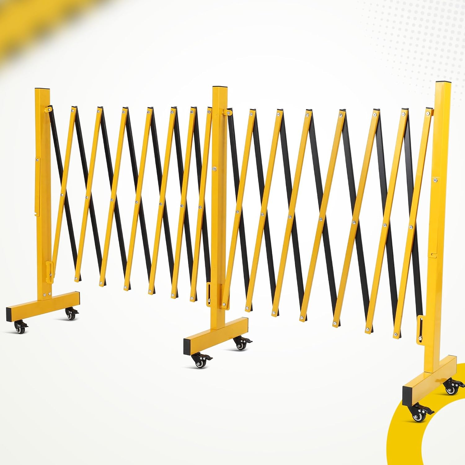Folding Security Gate Expandable Barricade, Heavy-Duty Retractable Barrier with Wheels for Crowd Control, Traffic, Parking Lots, Warehouses & Residential Use, Lockable Casters, Weather-Resistant Steel