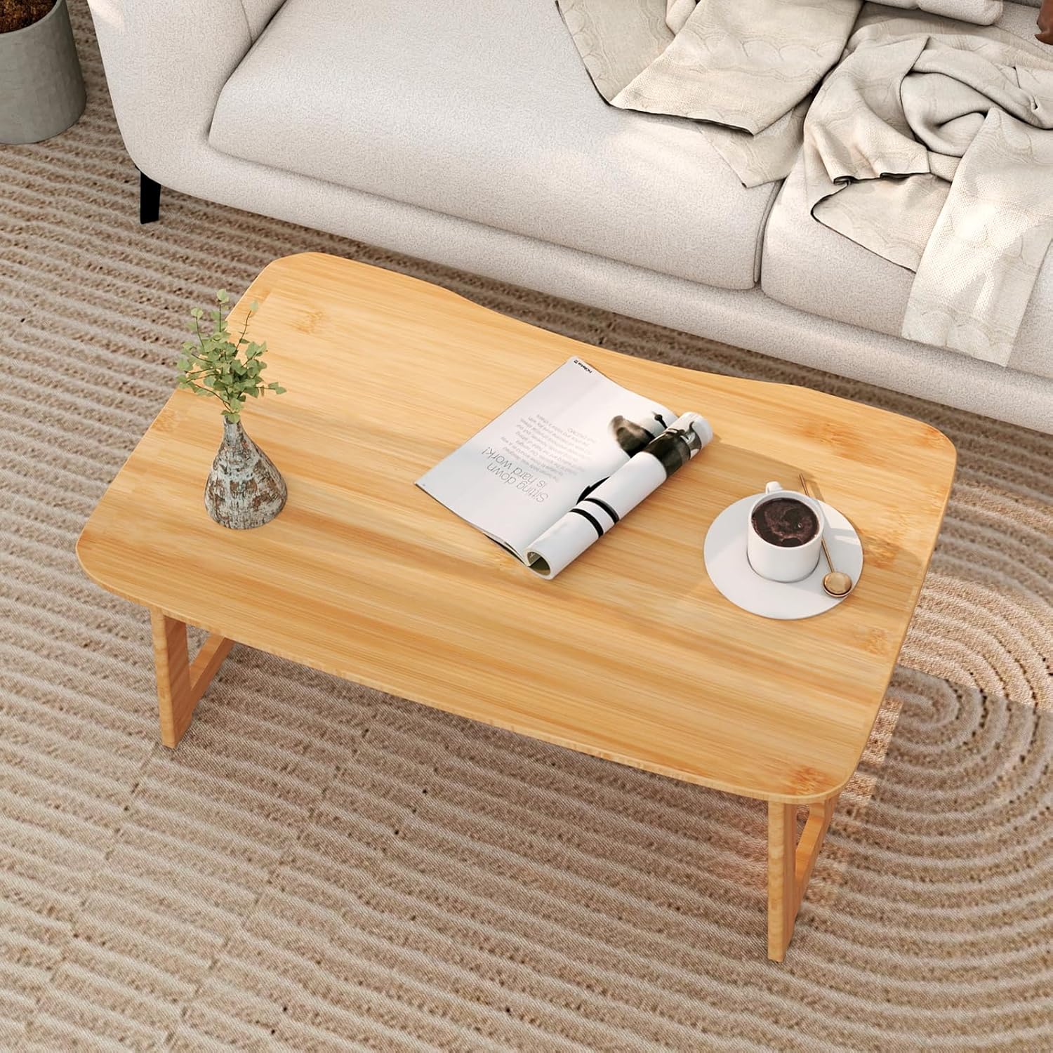Japanese Folding Coffee Table,Bamboo Foldable Floor Low Table,Chabudai Tea Table for Sitting Tatami Living Room Bay Window,No Assembly (Wood)