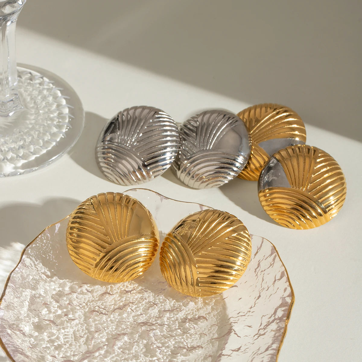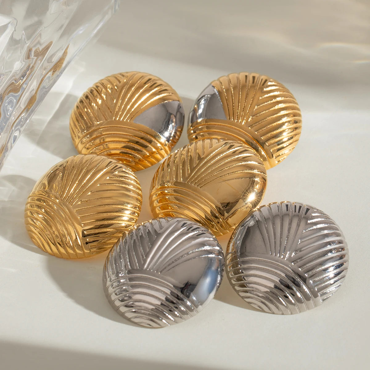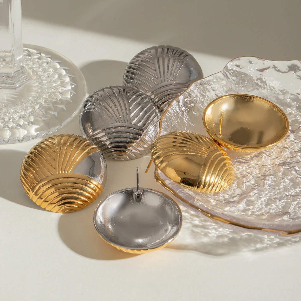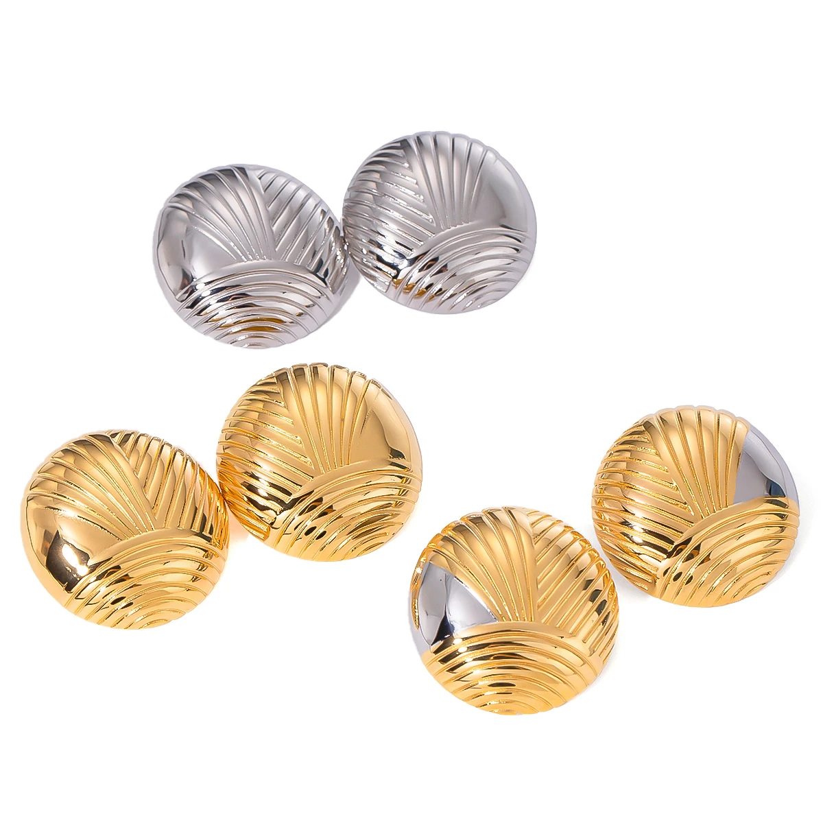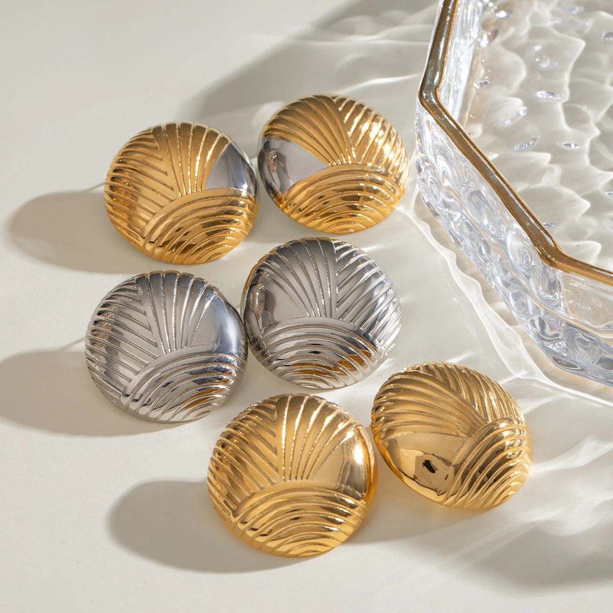 18K Gold Plated Stainless Steel Geometric Irregular Ribbed Round Earrings Women Charms Metal Texture Waterproof Jewelry