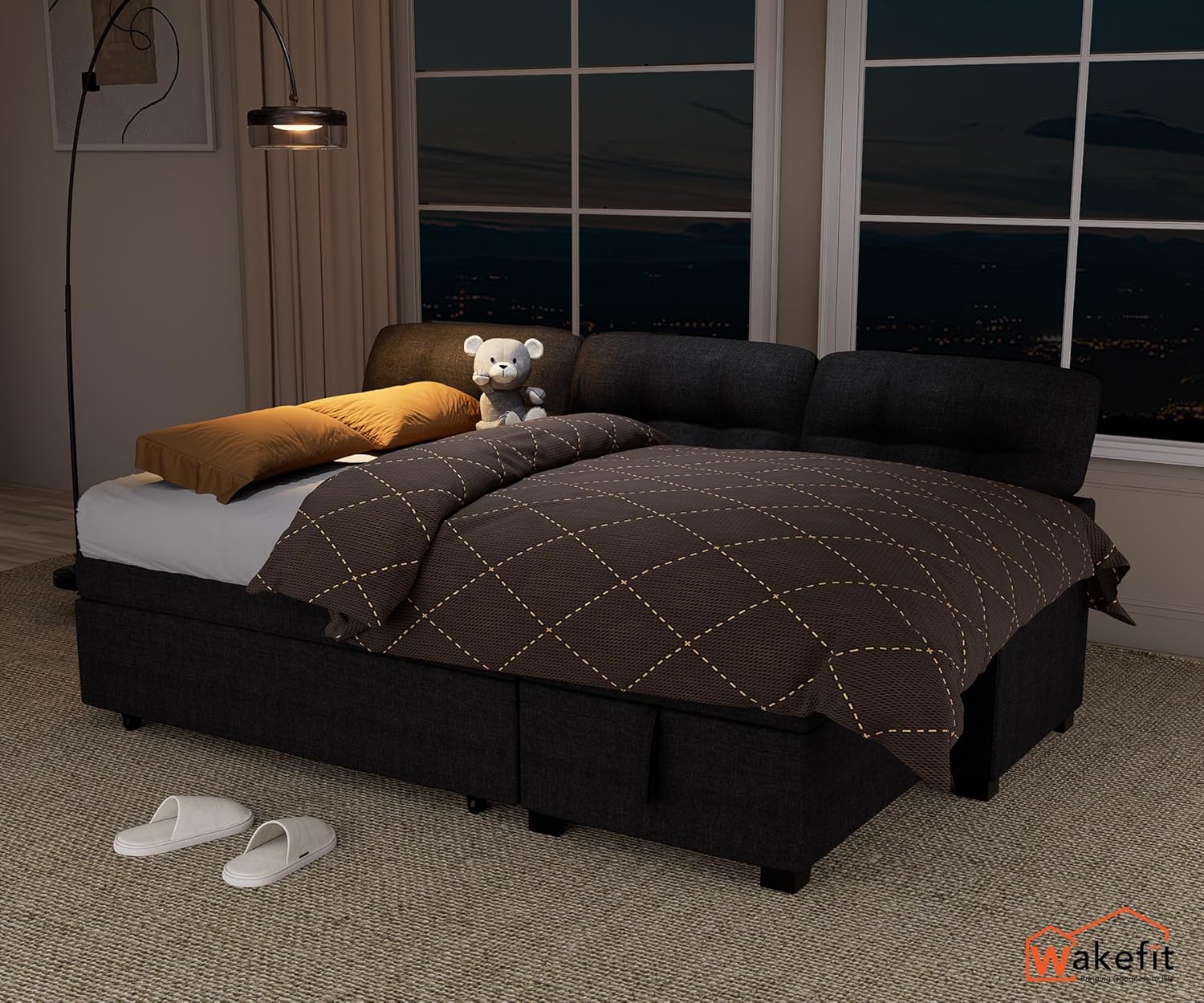 - 𝗜𝗻𝘀𝘁𝗮𝗻𝘁 𝗧𝗿𝗮𝗻𝘀𝗳𝗼𝗿𝗺𝗮𝘁𝗶𝗼𝗻: A comfortable sofa during the day, and a spacious sleeper at night. With a simple pull-out action, the Wakefit sofa bed effortlessly expands into a cozy bed for guests or overnight stays.