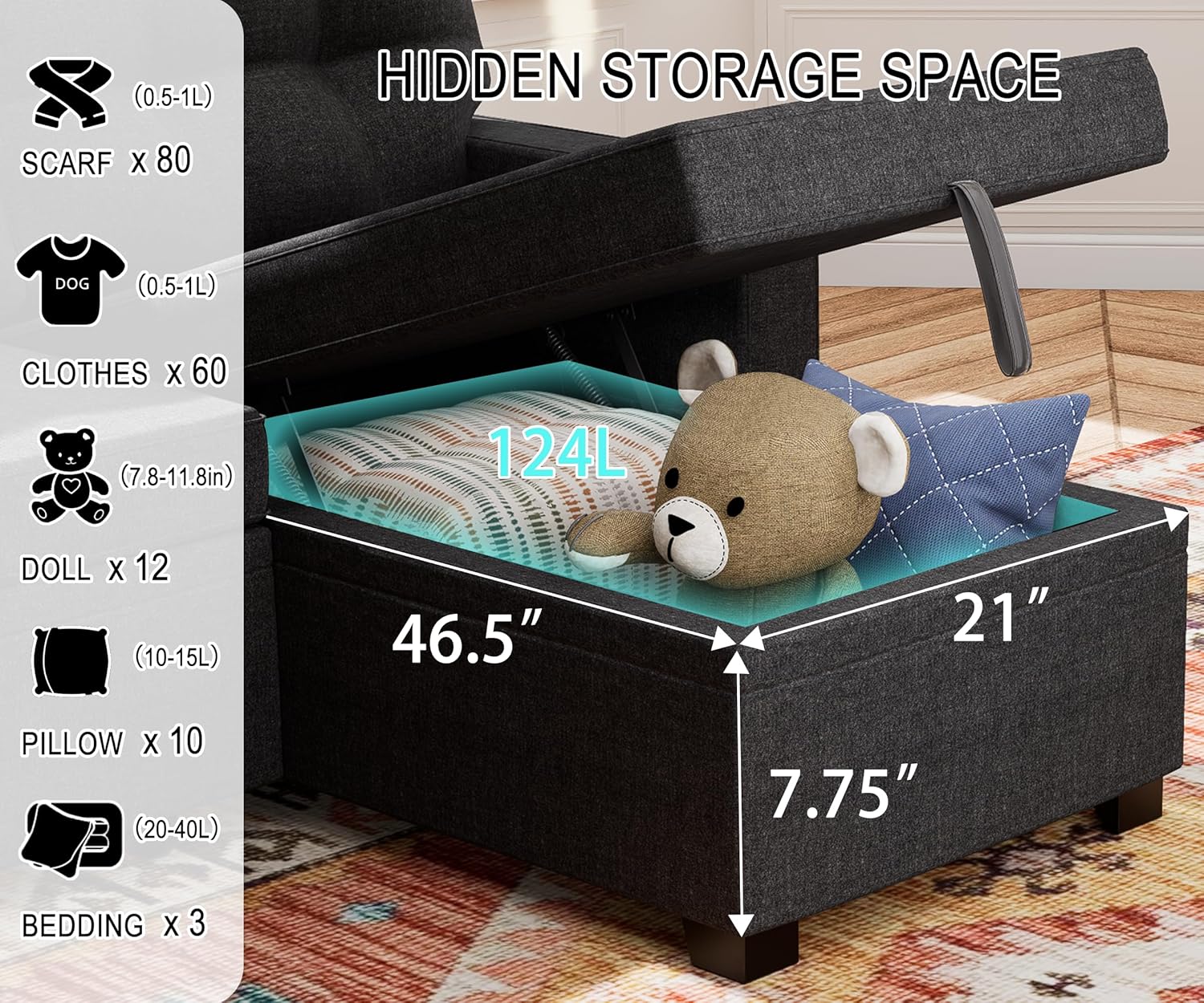 - 𝗔𝘀𝘀𝗲𝗺𝗯𝗹𝘆: This Sectional sofa bed comes in three packages and requires 2 people to assemble in about 20 mins. It includes instructions and tools. If you have any questions, our professional service team is available to assist you within 12 hours.
