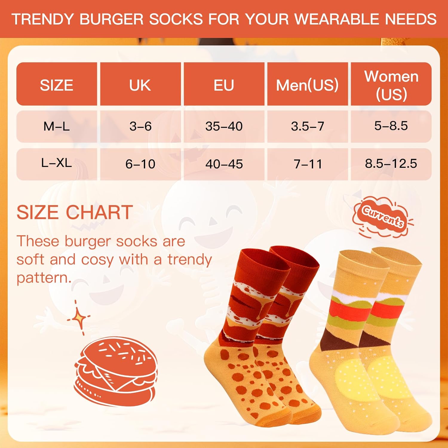 - PERFECT GIFT IDEAS: Burger socks are a great novelty gift to surprise your loved ones, family members on Valentine's Day, Christmas, birthdays, show your dearest ones your sense of humor and add a little bit of color to them.