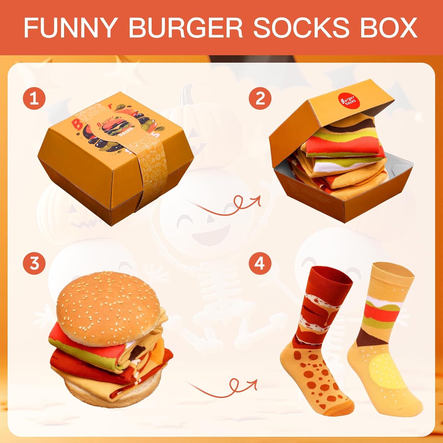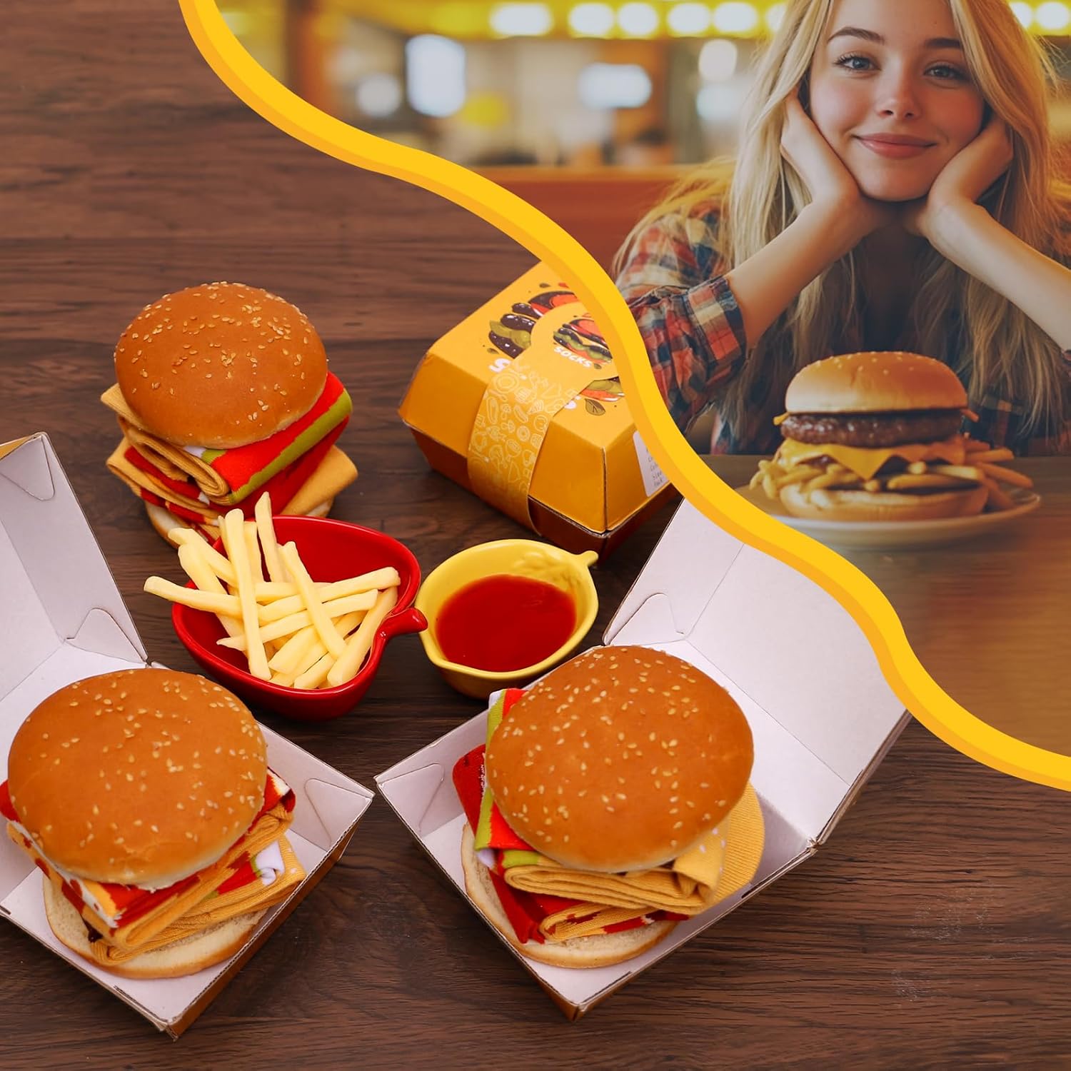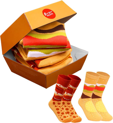 - FUNNY SOCKS: Socks in a burger box? The funny socks are packaged in a burger box, just like a burger straight out of the restaurant, guaranteed to have a surprise effect, it's a great gift for anyone who loves burgers or creative items!