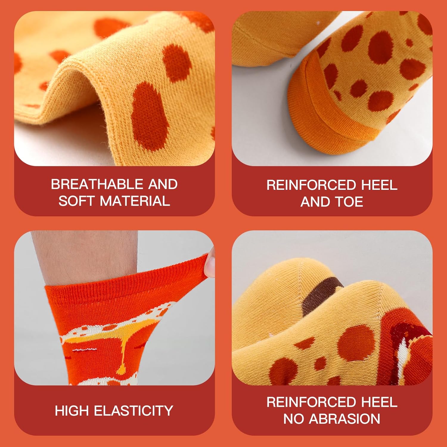 - SOFT AND COMFORTABLE: Food socks are made of 78% Cotton, 20% Polyester, 2% Elastane, soft and comfortable, skin-friendly and breathable, giving you a comfortable wearing experience!