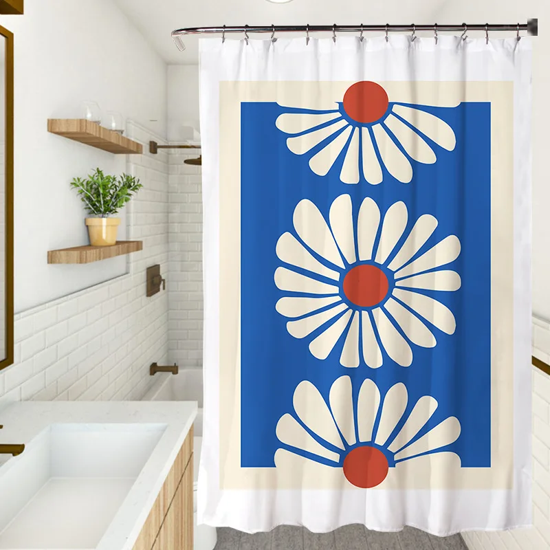 Fresh Colourful Floral Shower Curtain Waterproof Fabric Simple Flowers Plants Art Painting Bathroom Shower Curtains Sets Decor