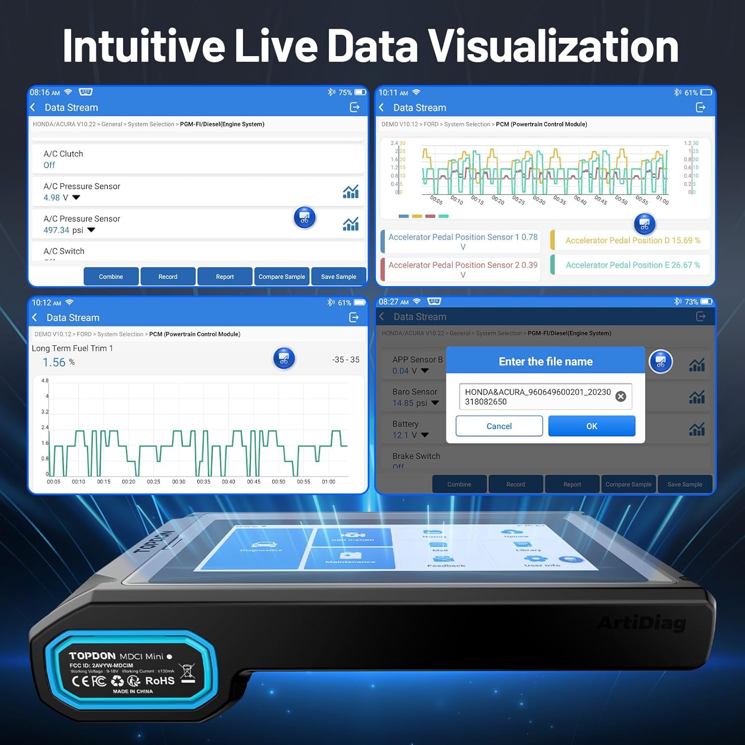 - Experience Enhanced Diagnostics with the New Bi-Directional Control on TOPDON ArtiDiag800BT V2.0: The upgraded TOPDON scanner is equipped with powerful Bi-directional Control (Active Test) capabilities! This new feature lets you take command of vehicle components in real time—activate solenoids, trigger actuators, and test sensors on demand. Easily perform advanced functions like ACC shut-off, window calibration, A/F reset, coolant bleeding, AdBlue reset, Stop/Start reset, and more—functions previously unavailable on earlier versions. Whether you're a pro technician or a serious DIYer, TOPDON AD800BT V2.0 gives you dealer-level control to pinpoint problems faster and fix them smarter