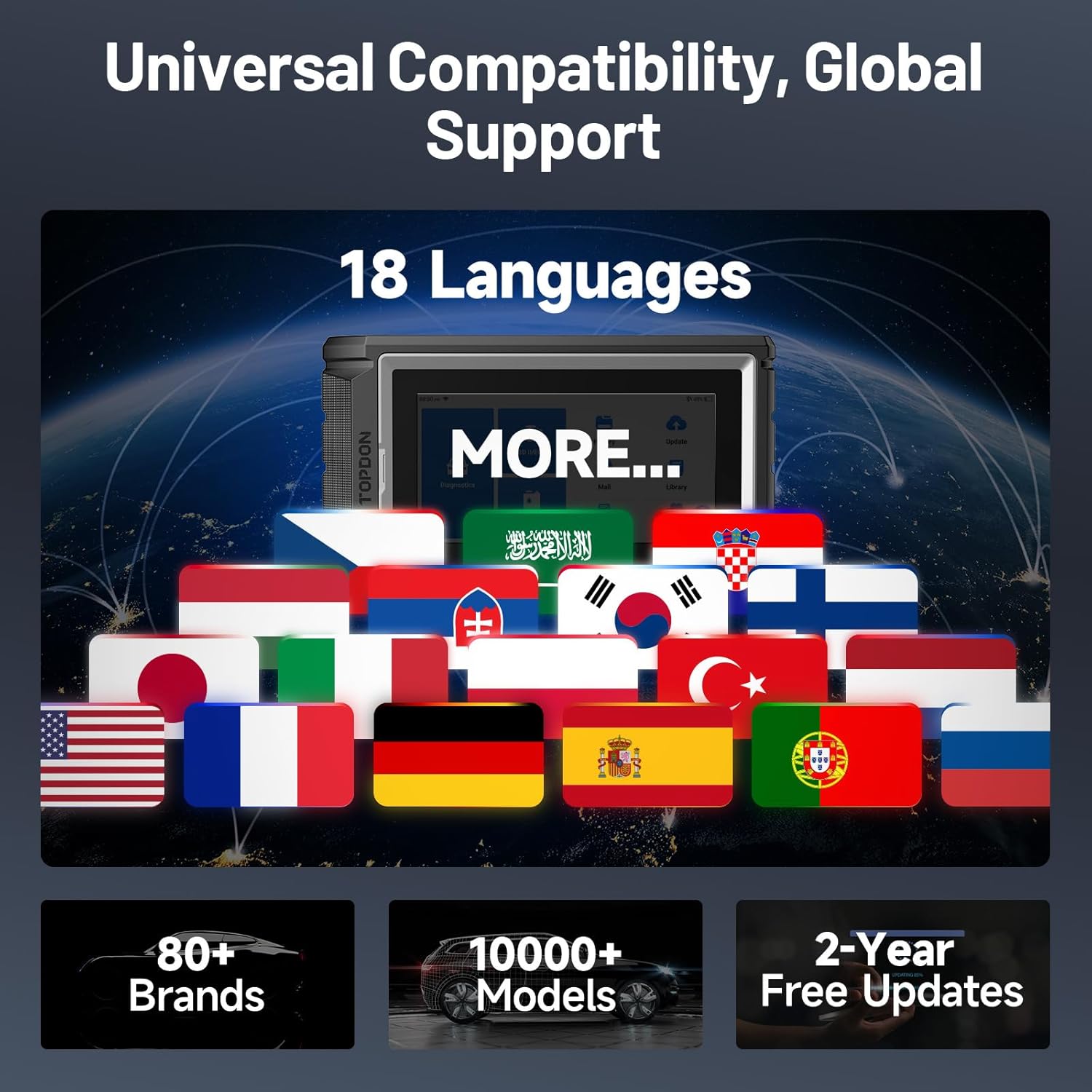 - Always Up-to-Date+2 Years free upgrades: TOPDON scanner ArtiDiag800BT 2 for car offers hassle-free software updates via WiFi, allowing you to access the latest diagnostic functions, expand vehicle coverage, and enhance system performance with just a single tap—no need for external devices or complicated processes. Keep your TOPDON OBD2 Scanner ahead of dealership tools without hidden fees