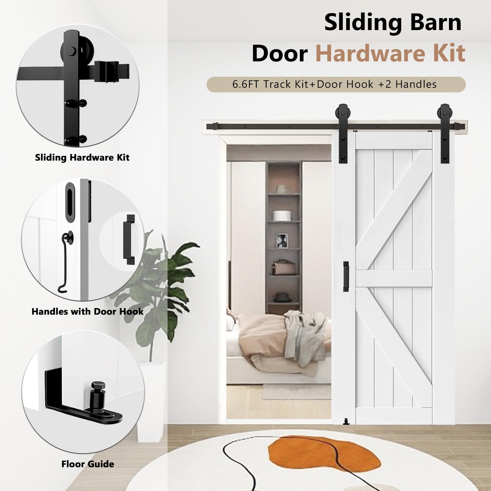Arti-Life Sliding Barn Door Hardware Kit 6.6 FT Heavy Duty-Smoothly and Quietly- Easy to Install with Adjustable Floor Guide, Door Hook and 2 Handles - Fit 1 3/8-1 3/4" Thickness(I Shape Hanger)