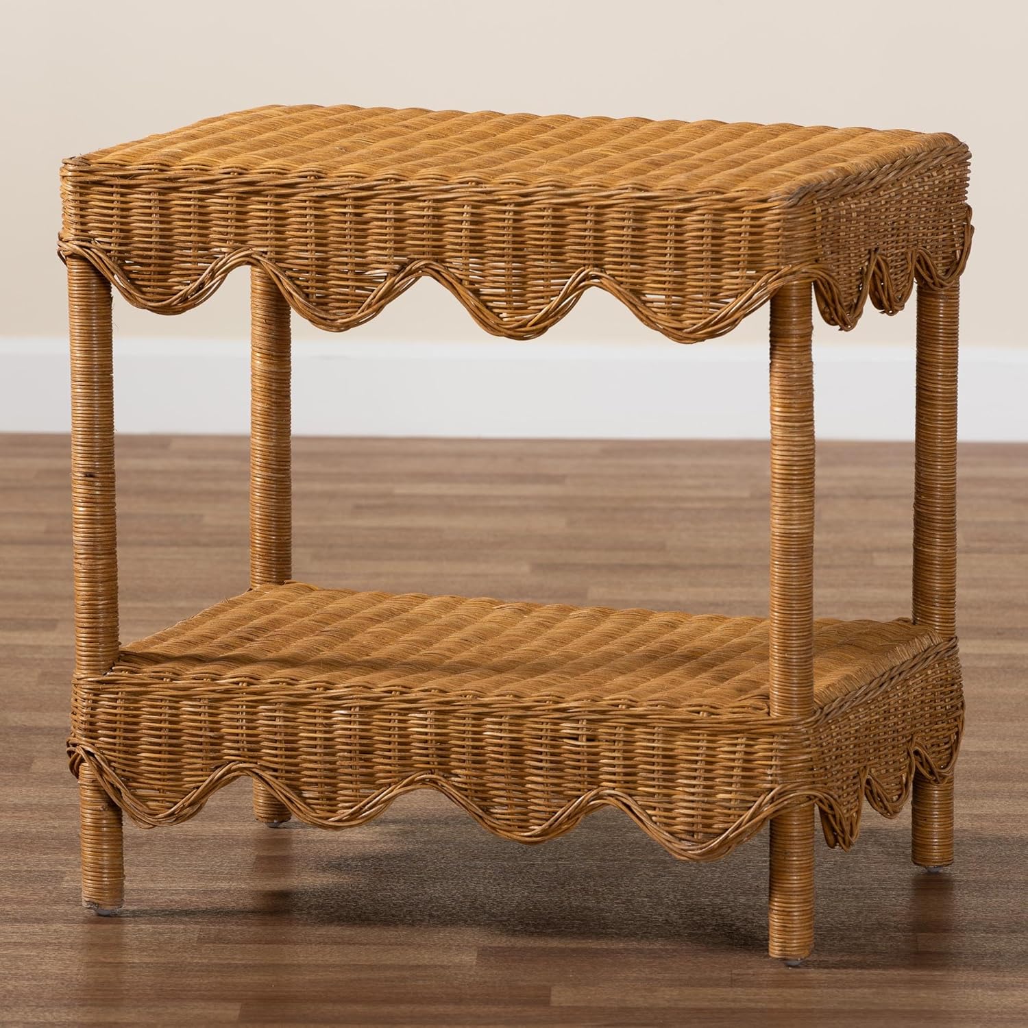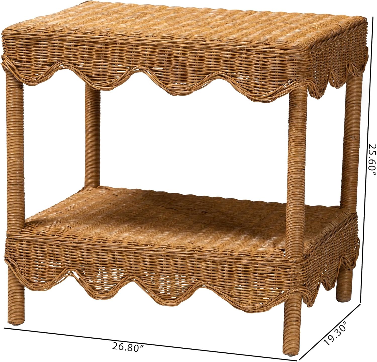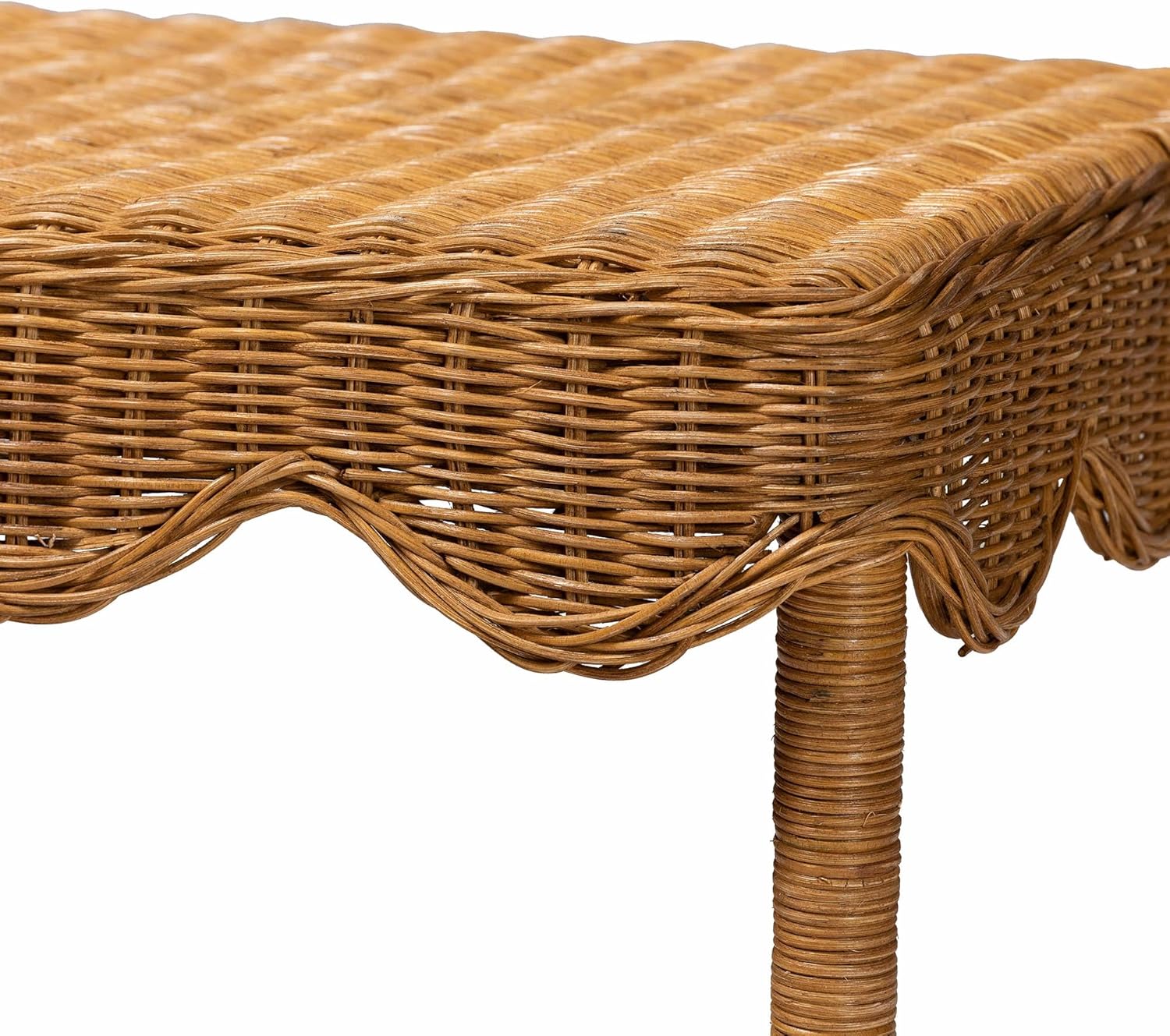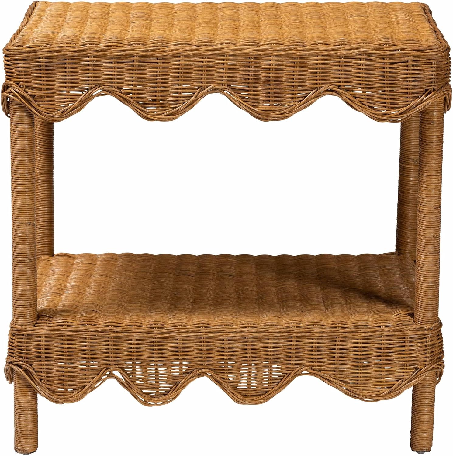 bali & pari Oteria Scalloped Natural Rattan Side Table, Light Honey
