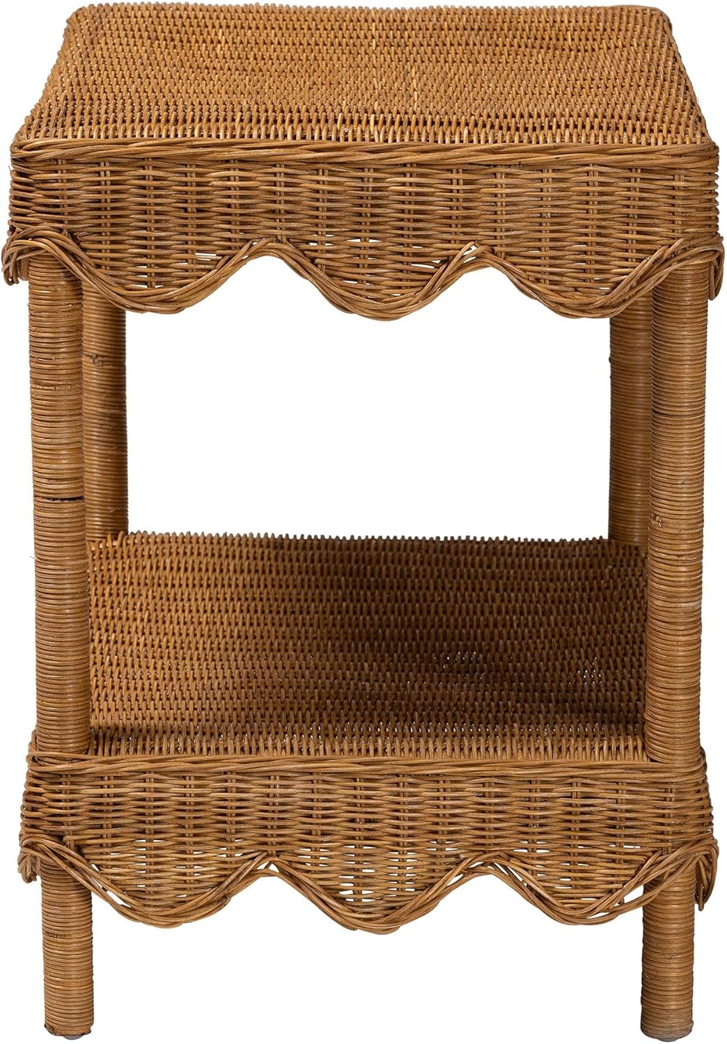 Rustic refinement transforms the feel of any layout with the stunning Oteria side table. Handcrafted in Indonesia, this bohemian piece consists of natural rattan adeptly fashioned by skilled artisans. The scalloped embellishments of the frame create a serene presentation while the broad tabletop and open shelf brilliantly showcase decorations. The Oteria will arrive fully assembled and utilizes rounded legs that complement the smooth geometry of the piece while providing excellent stability. Lending a refreshing ambiance, the Oteria side table uplifts any arrangement. Disclaimer: Rattan is a product of nature and may have variations in areas such as, but not limited to, color, pattern, grain and texture. The hair-like strands of rattan/rattan-fiber are common due to the nature of the material.