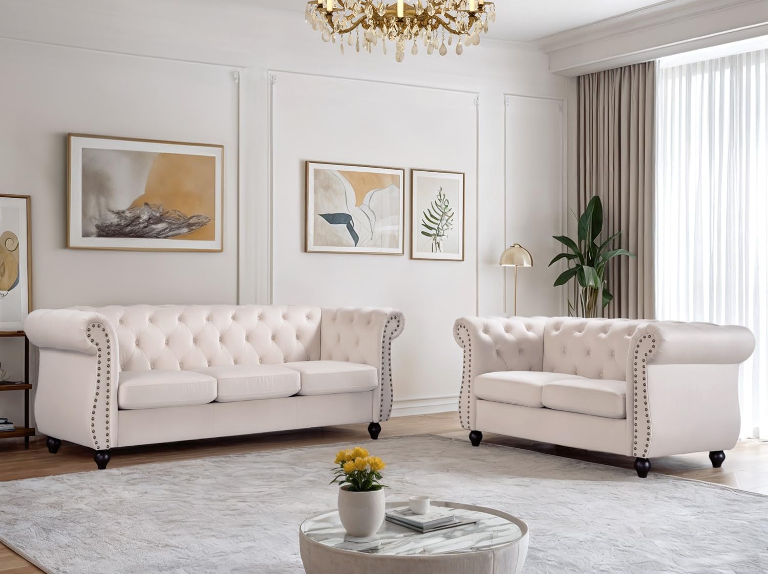 - EXQUISITE CRAFTSMANSHIP: Built with a sturdy wood frame, rolled arms, and button-tufted backrests, this sofa couch adds elegance and sophistication to any living space