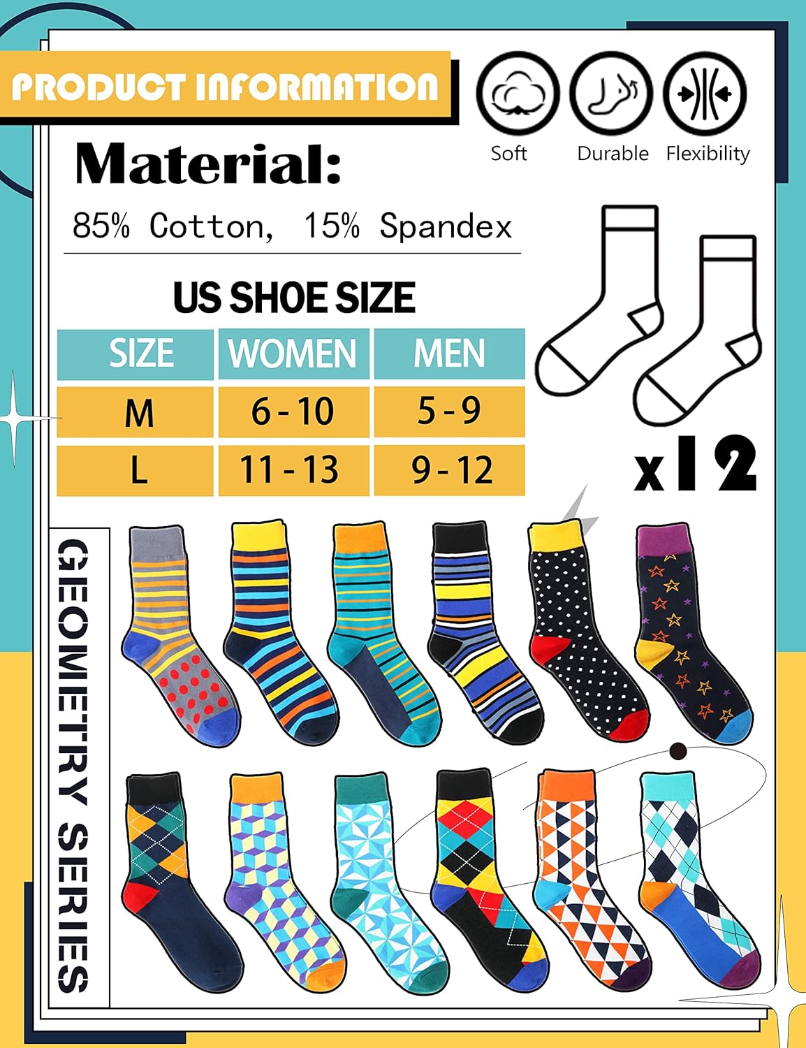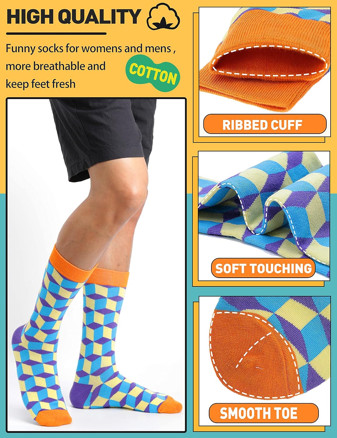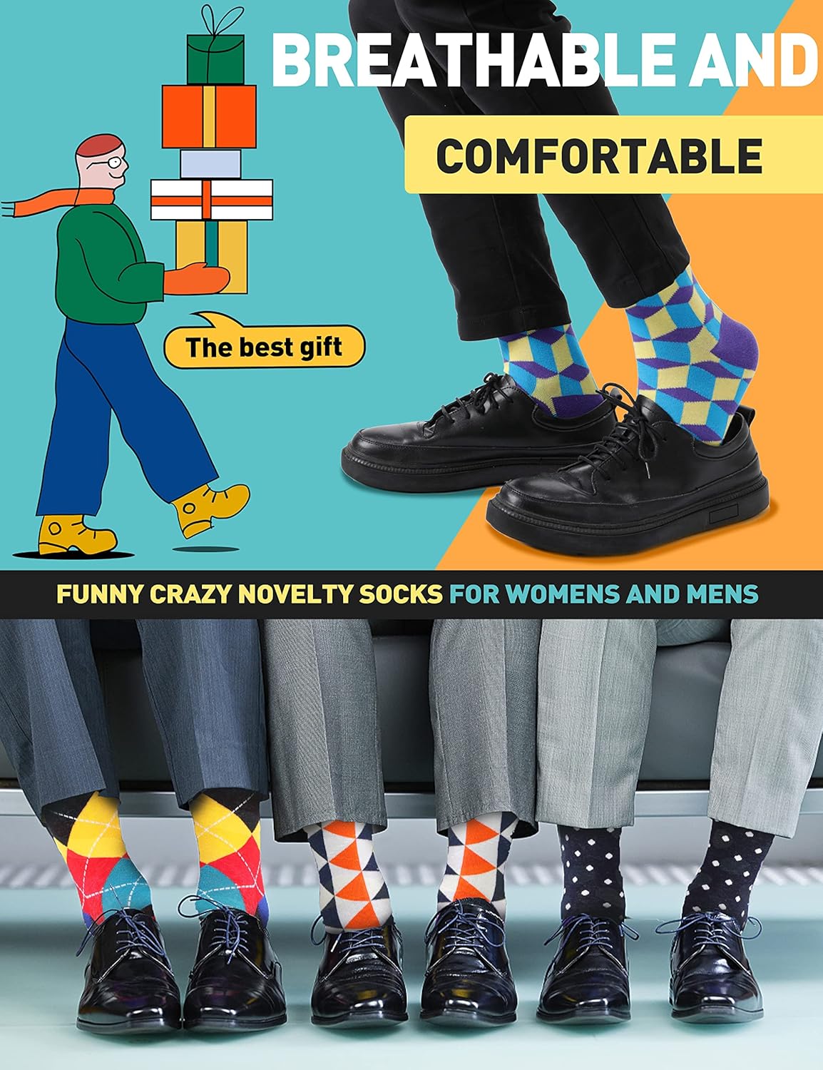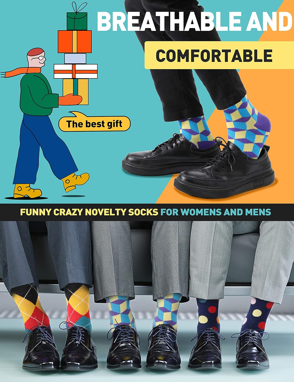 - 【Funny Pattern & Wide Application】Colorful socks to brighten your mood every moment! By designing with unique novelty pattern, these crazy fun socks are stylish to make you stand out from the crowd. These fun socks can be used as dress socks, boot socks, home socks, sport socks, ect.