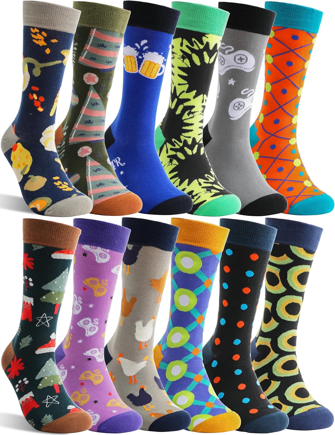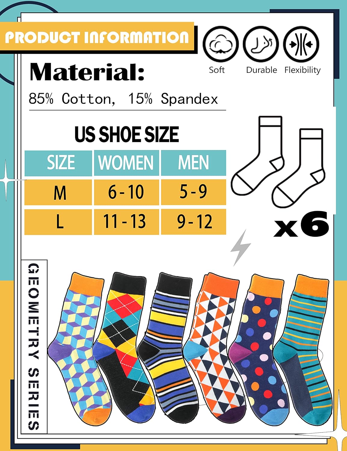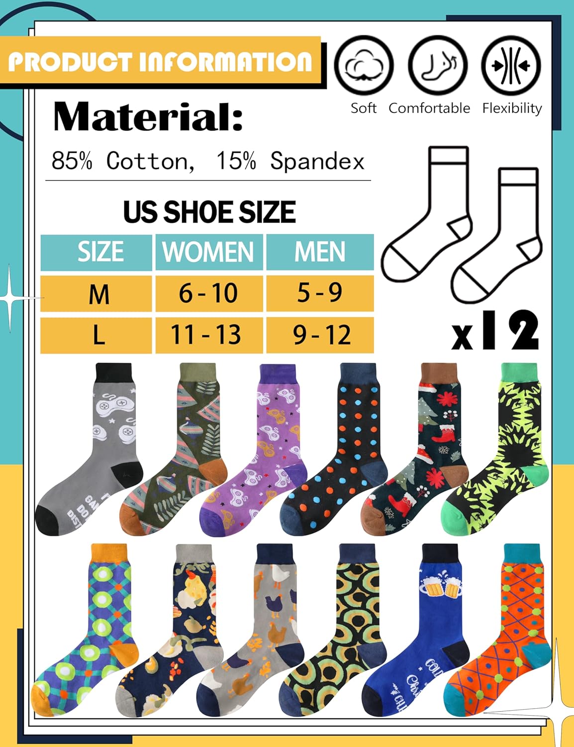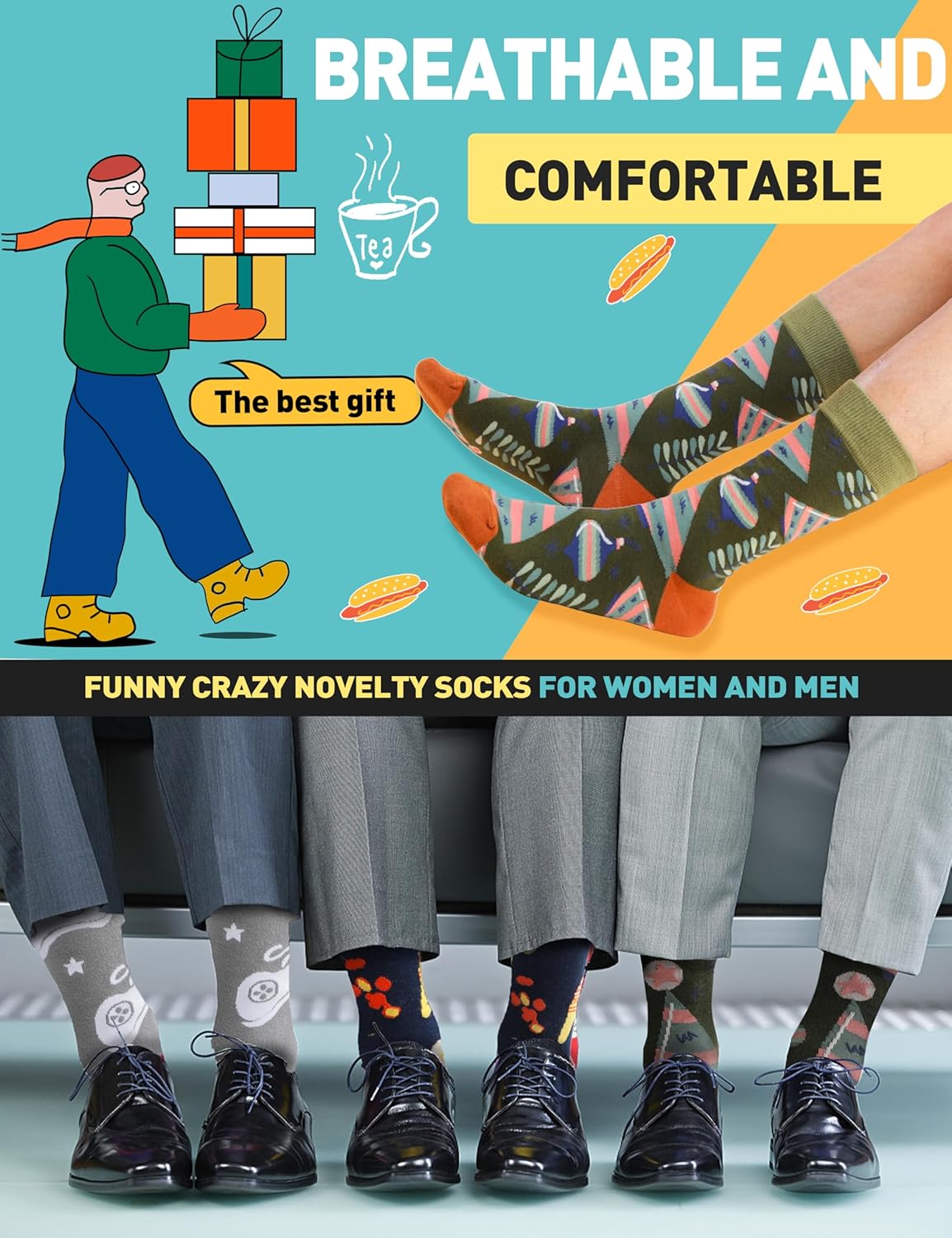 - 【Funny Pattern & Wide Application】Colorful socks to brighten your mood every moment! By designing with unique novelty pattern, these crazy fun socks are stylish to make you stand out from the crowd. These fun socks can be used as dress socks, boot socks, home socks, sport socks, ect.