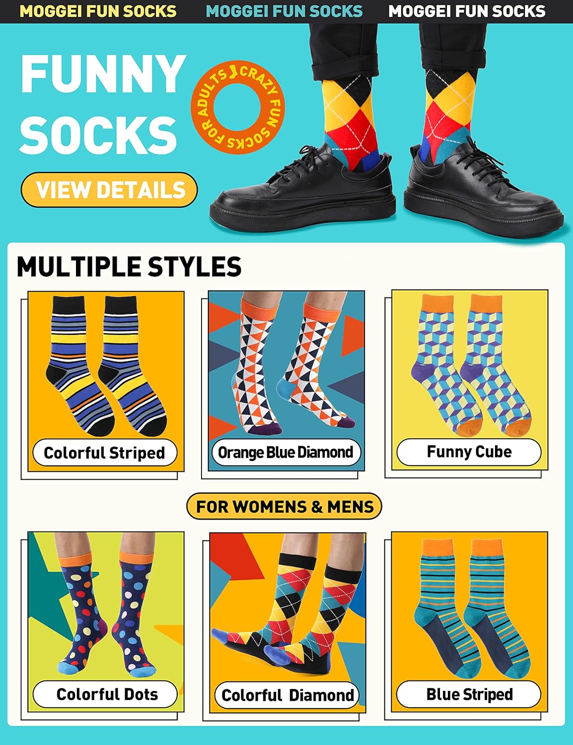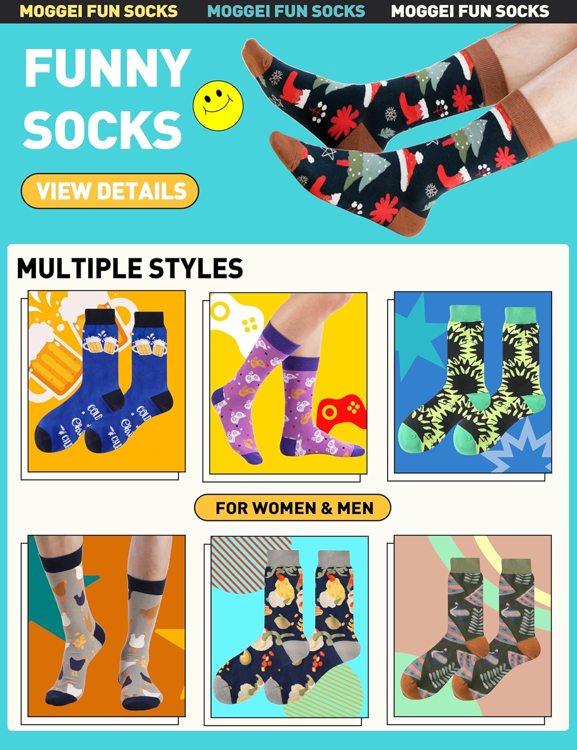 MOGGEI Funny Socks for Men Women Fun Cozy Crazy Novelty Fashion Breathable Printed Cotton Boot Socks