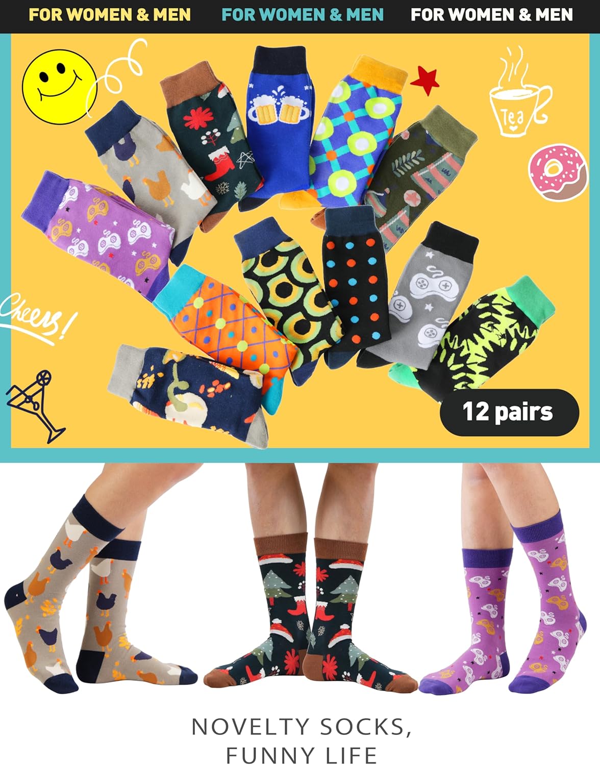- 【Gifts for Womens & Mens】These fun socks will be a perfect presents as Christmas gift, White Elephant Day gift, birthday gift,Father's Day gift, Mother’s Day gift, Valentines’ Day gift or other Memorial Day gift.
