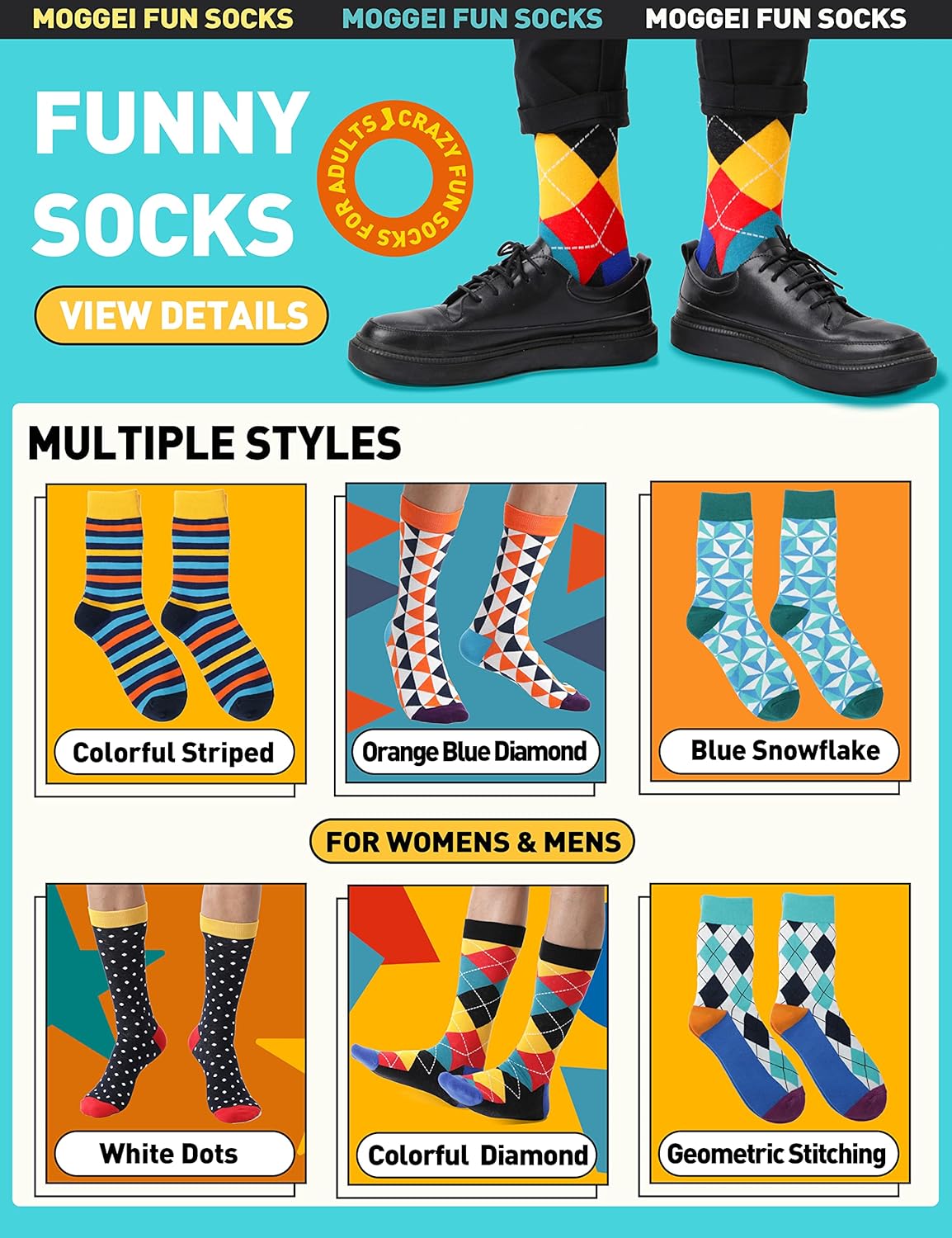 - 【High Stretchy】With high stretchy cuff, durable heel and smooth toe, these socks for women & men will fit your feet snugly and keep socks stable.They don’t grind your feet and can reduce blisters. Let your feet have a wonderful journey with MOGGEI fun socks!