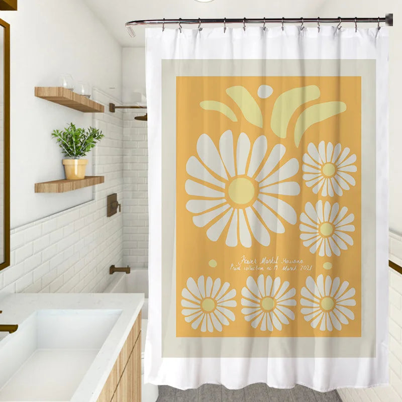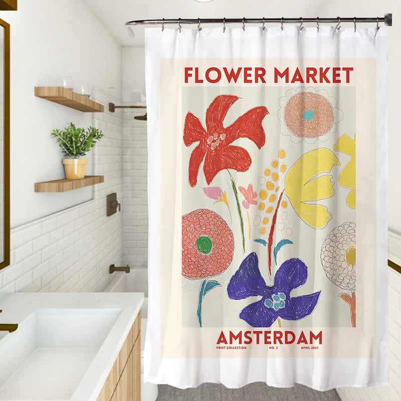 Fresh Colourful Floral Shower Curtain Waterproof Fabric Simple Flowers Plants Art Painting Bathroom Shower Curtains Sets Decor