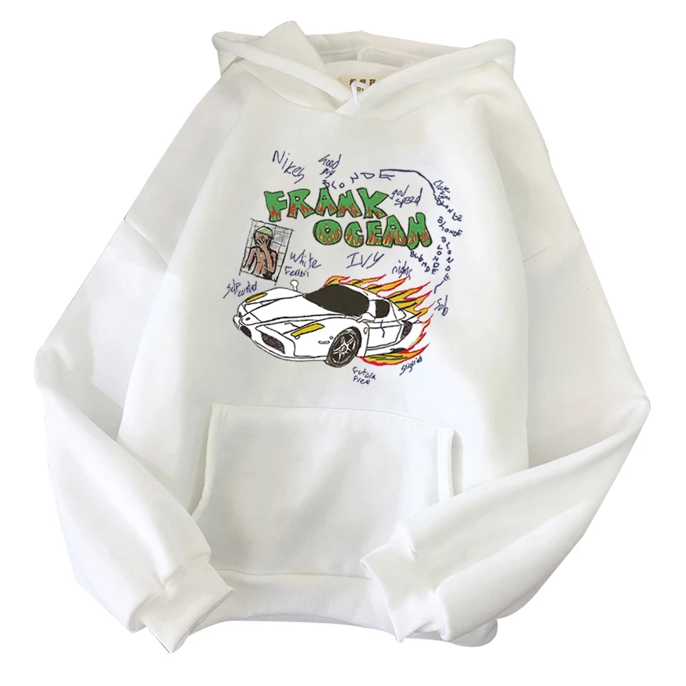 The Channel Orange-inspired print on this hoodie captures the essence of Frank Ocean’s celebrated album. The bold visuals and vintage aesthetic create a statement piece that resonates with fans and fashion enthusiasts alike. Whether you're at a music event or walking the streets, this hoodie is sure to turn heads.