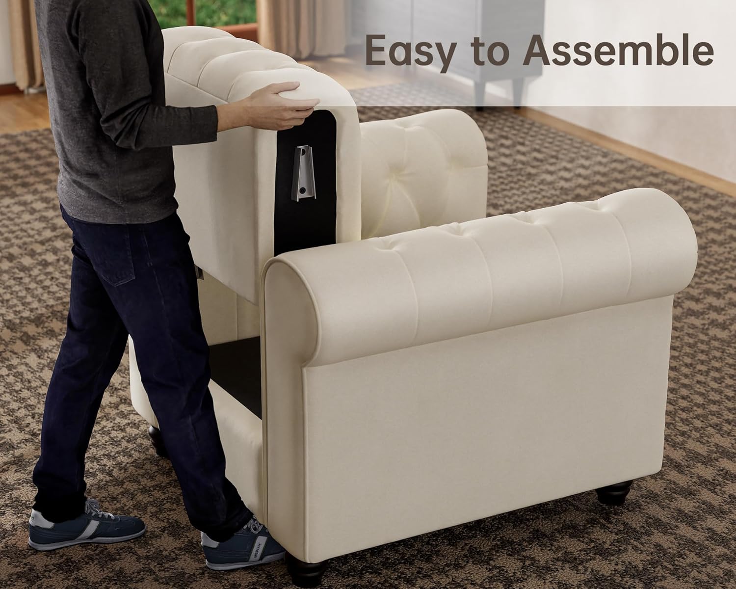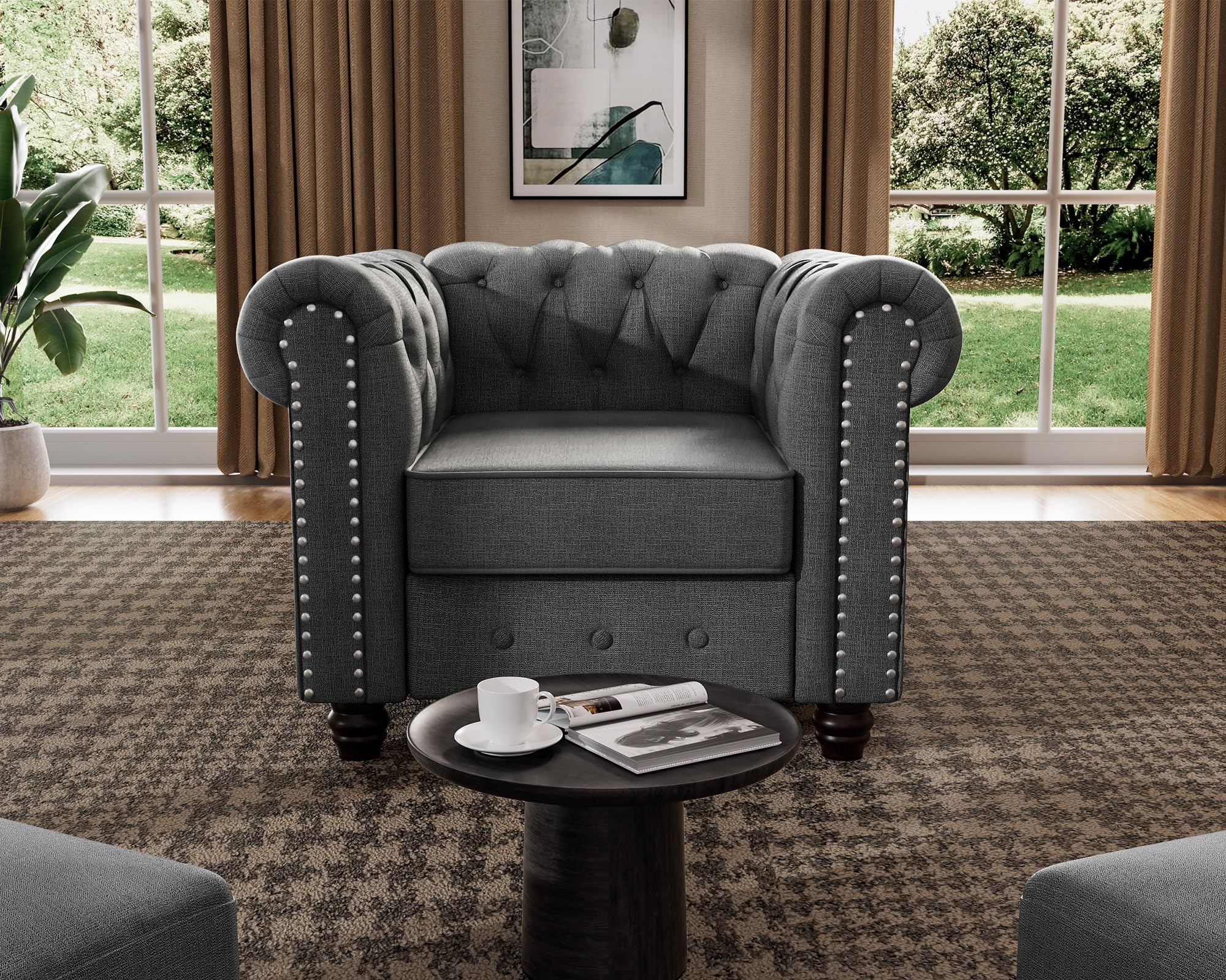 - Timeless Chesterfield Design: The Morden Fort Chesterfield sofa set features classic tufted buttons and brass nailhead trim, exuding a sense of noble elegance. This tufted sofa combines traditional charm with modern practicality, making it a standout piece in any living room.