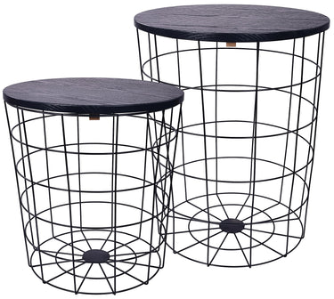 Nesting Table End Table Wire Basket Base with Wood Tops Side Table Set of 2, Gray