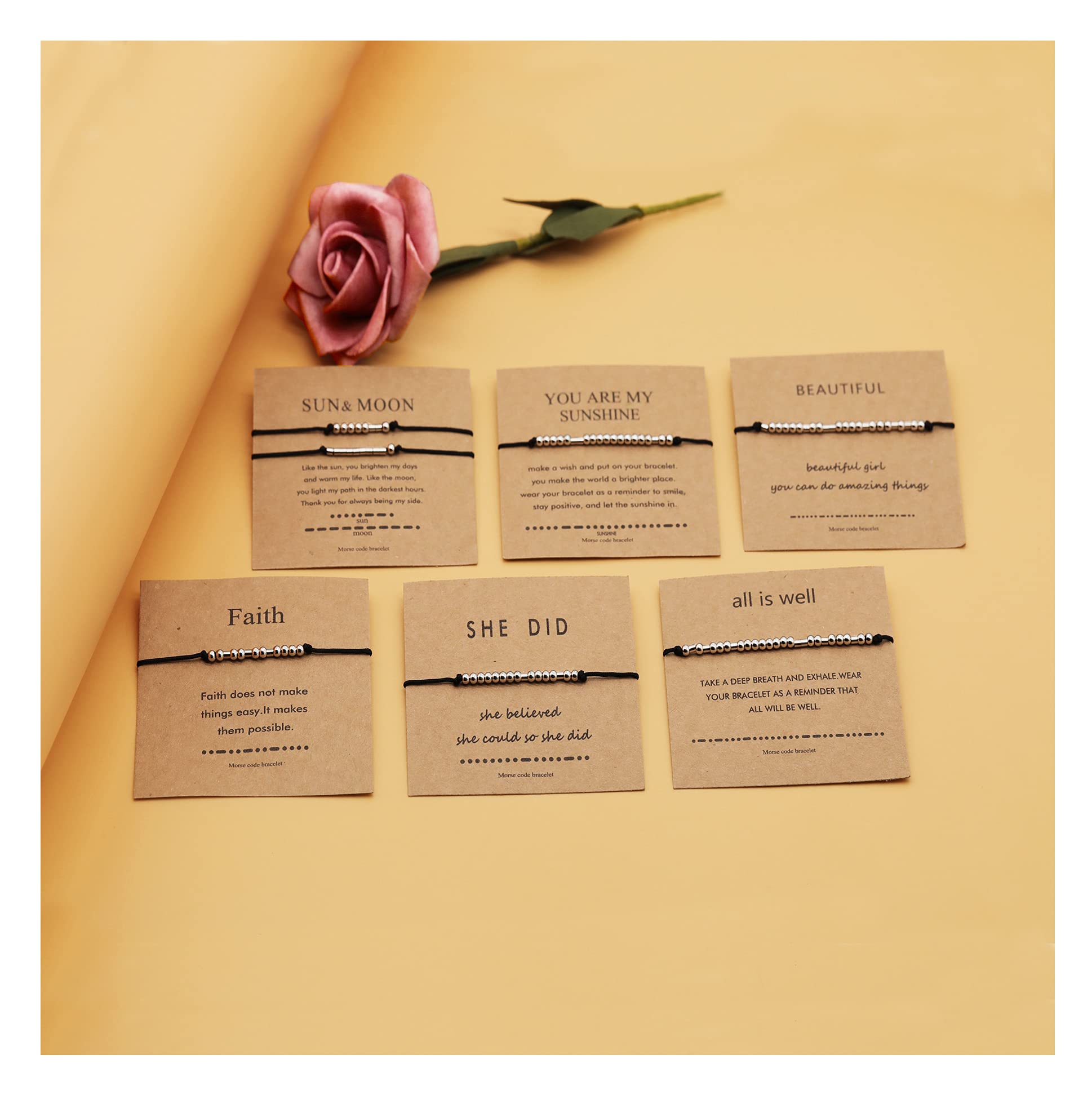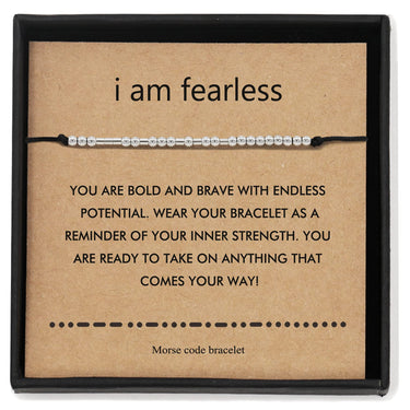 OBSUN Morse Code Bracelet Funny Gift for Women with Meaning Card Gift Card for Best Friend Couple Mom Family (I am fearless)