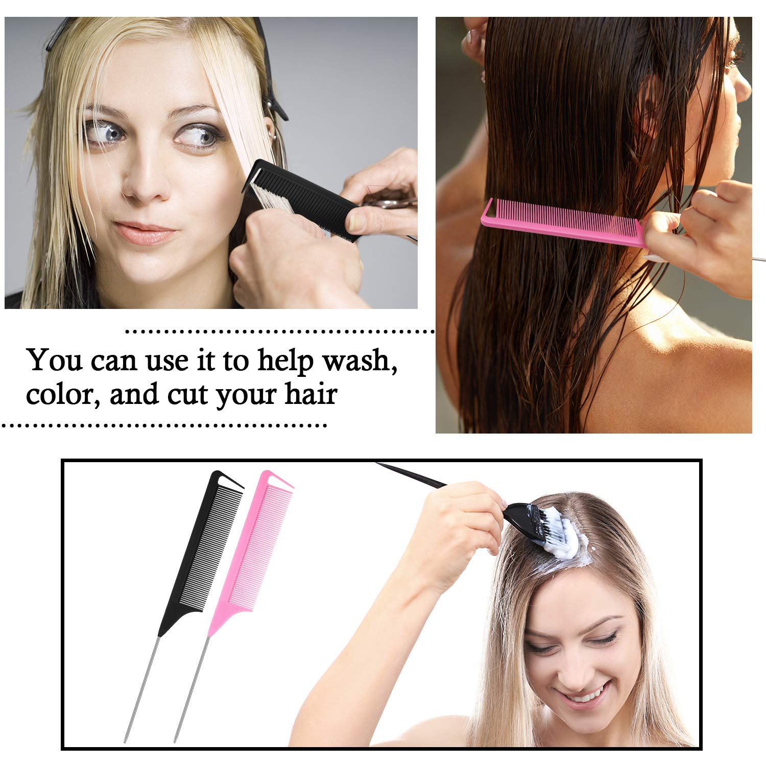- Long and thin handle design: these stainless steel pintail combs are designed with a long and thin stainless steel pintail, which is practical for hair parting, styling, back combing, post styling and hair coloring, also convenient to grip