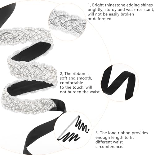 - 【High-Quality Materials】This black sparkly belt is made of high-quality polyester using hand-stitching technology, with excellent elasticity and durability, specially created for wedding accessories. The bright rhinestone trim shines brightly, is strong and wear-resistant, and is not easy to crack or deform; The bridal belts for wedding dress is soft and smooth, feels comfortable to the touch, and will not put a burden on the waist.
