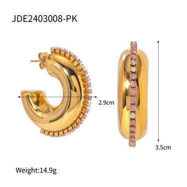 Geometric Waterproof 18k Gold Plated Stainless Steel C-shaped Earrings Inlay Rhinestone Charm Statement Anti Allergic Jewelry