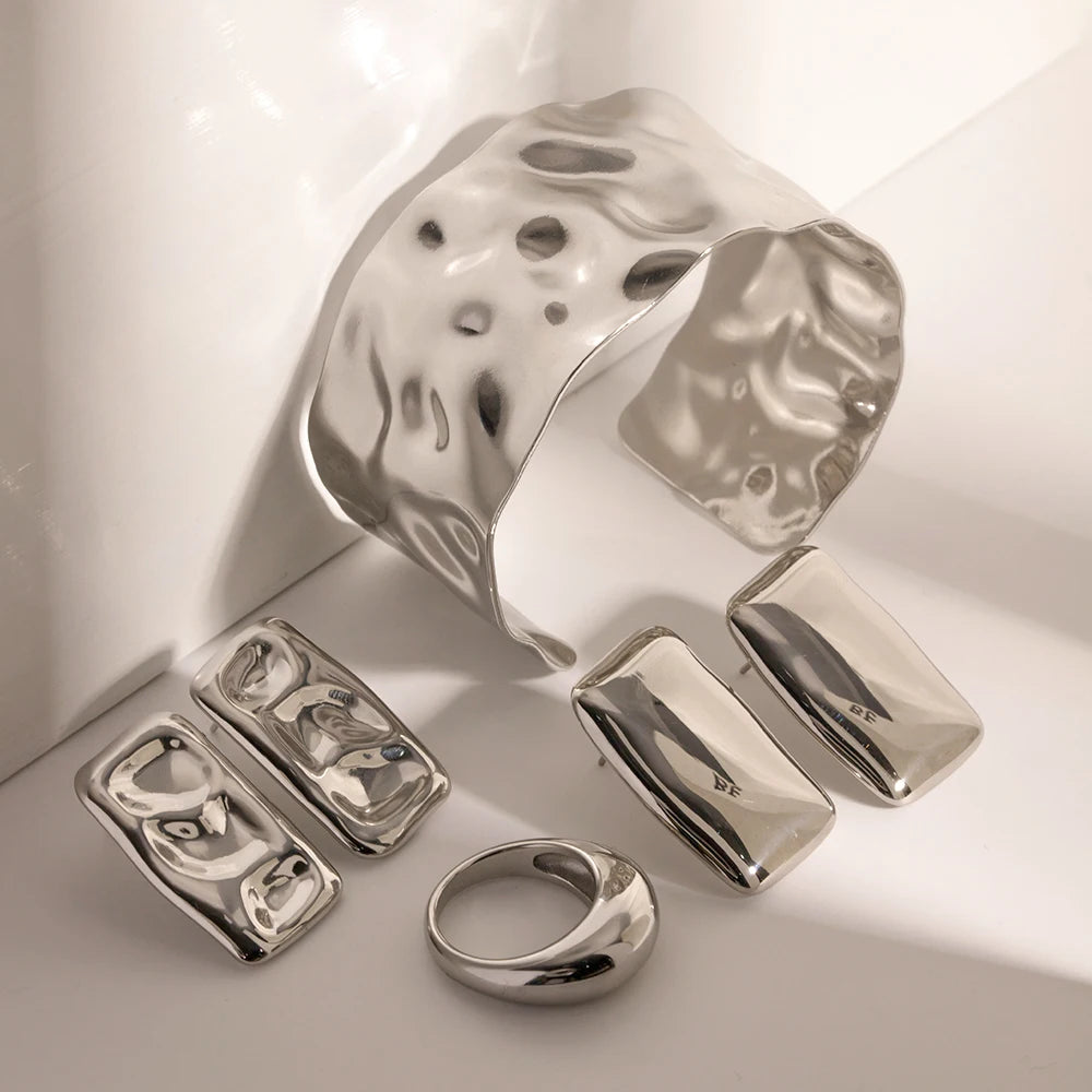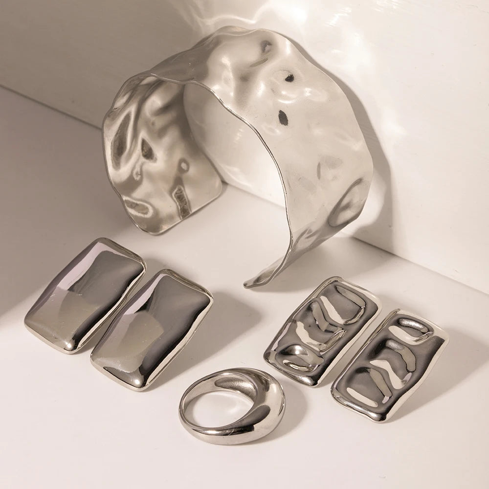 Low Key Luxury Stainless Steel Breathtakingly Reflective Finish Earring Silver Color Texturing Women Daily Wearing Gift