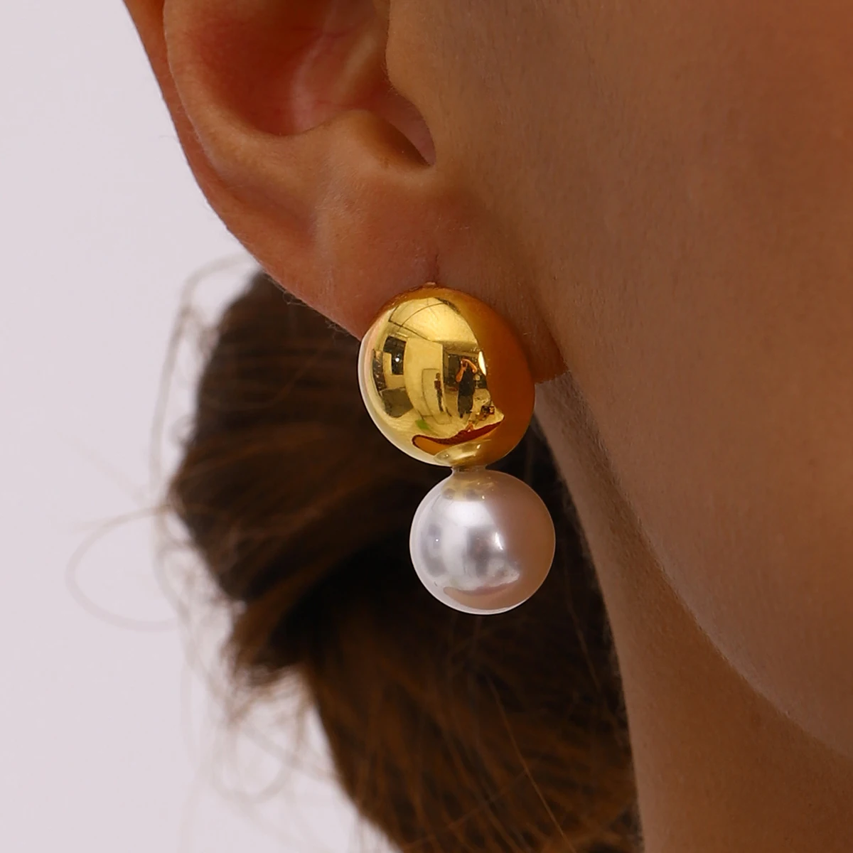 Minimalist 18k Gold Plated Smooth Steel Ball Series Ring Earrings Stainless Steel Women Rust Proof Exquisite Jewelry Bijoux
