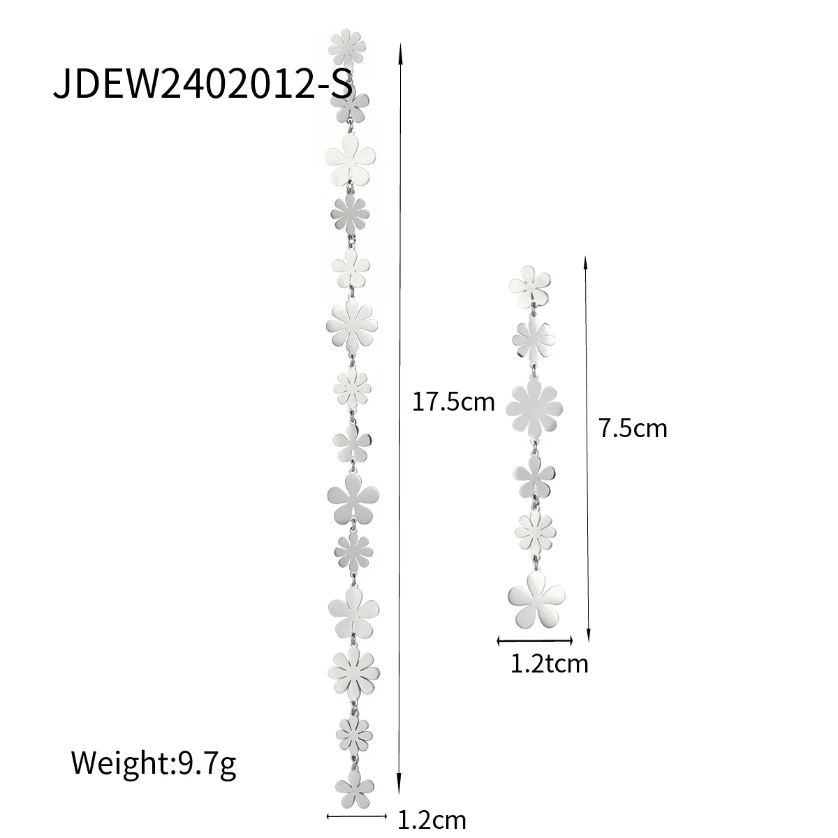 Chic Summer Stainless Steel Light Luxury 18K PVD Plated Long Asymmetrical Small Daisy Pendant Earrings Women Statement Jewelry