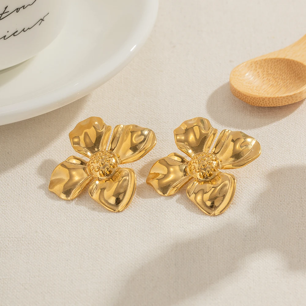 Exaggerated Stainless Steel Flower Stud Earrings 18K Gold PVD Plated Stainless Steel Texture Charm Fashion Female Jewelry gift