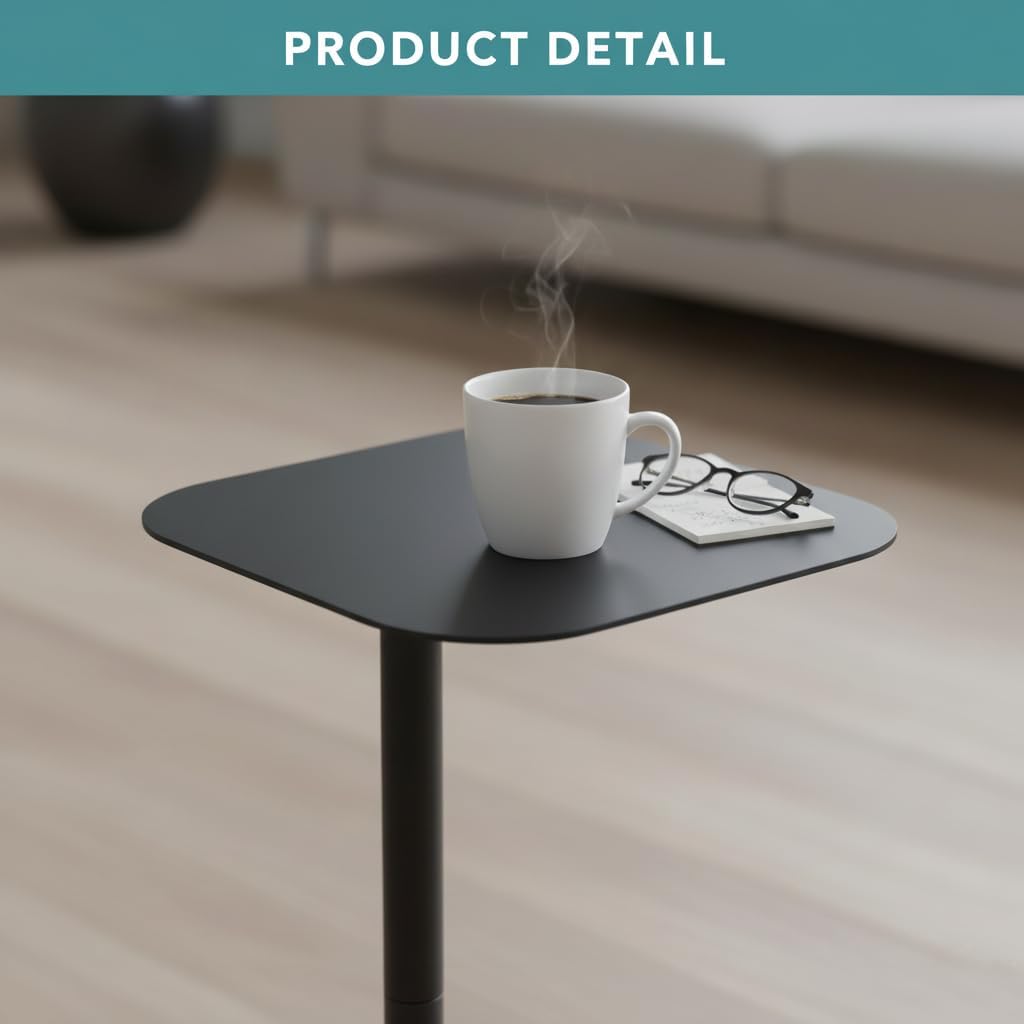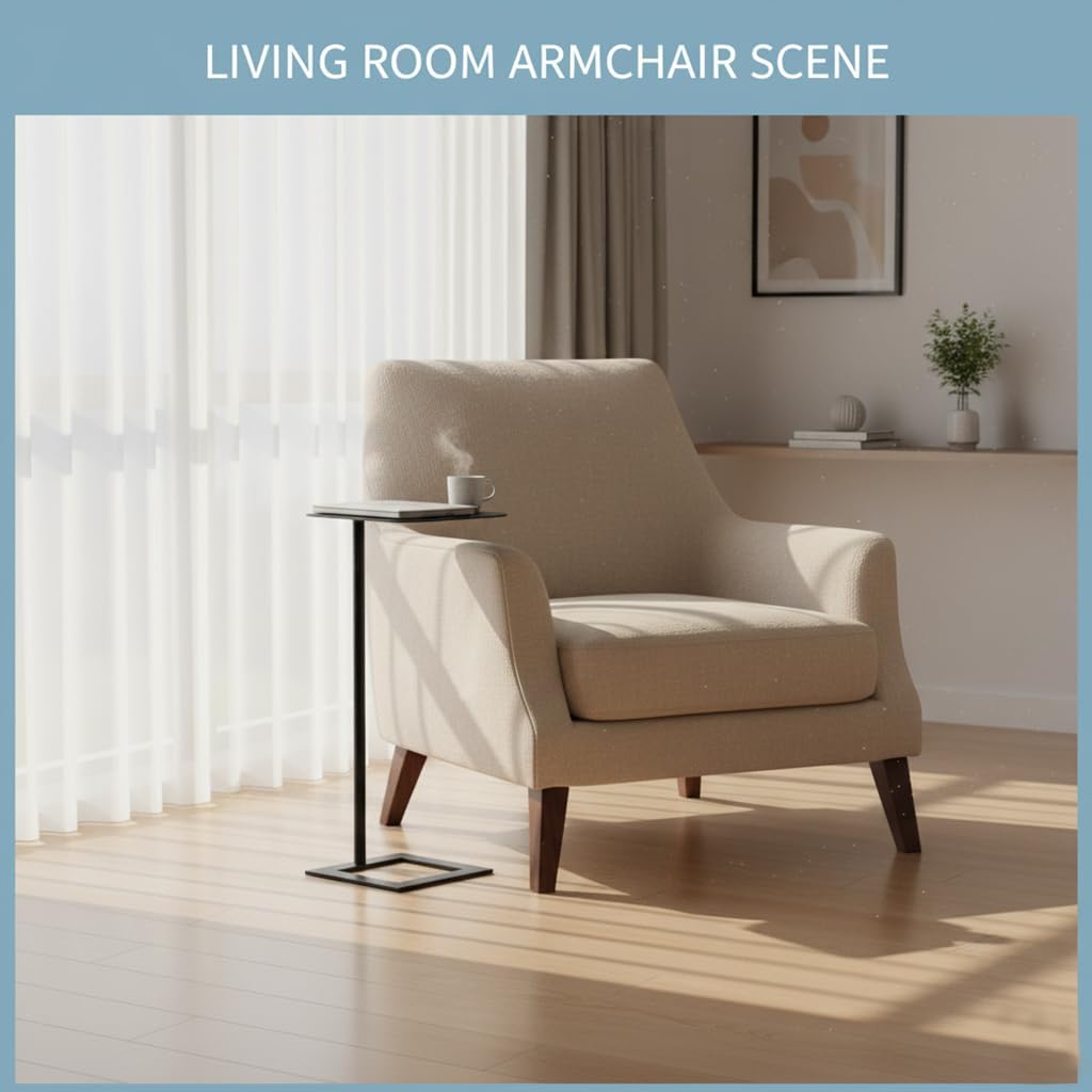 - 【Anti-Shake Stability Guaranteed】 Say goodbye to wobbles! Our premium C Shaped End Table for Couch features an innovative Inlay Connection where the tabletop meets the pole, ensuring supreme firmness and eliminating any shake. A widened, thickened bottom frame prevents the "top-heavy" issue, making this the most Stable Under Couch Table for your laptop, drinks, or snacks.