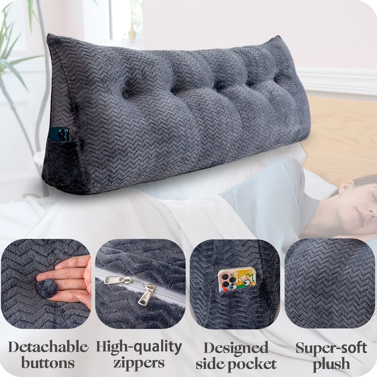 ZOEMO Stor Pølle Trekantet Sengegavl Kile Ryglæn Positioneringsstøtte Sengestøtte Læsepuder Sengegavl Kilepuder til Dagsseng med Aftageligt Betræk