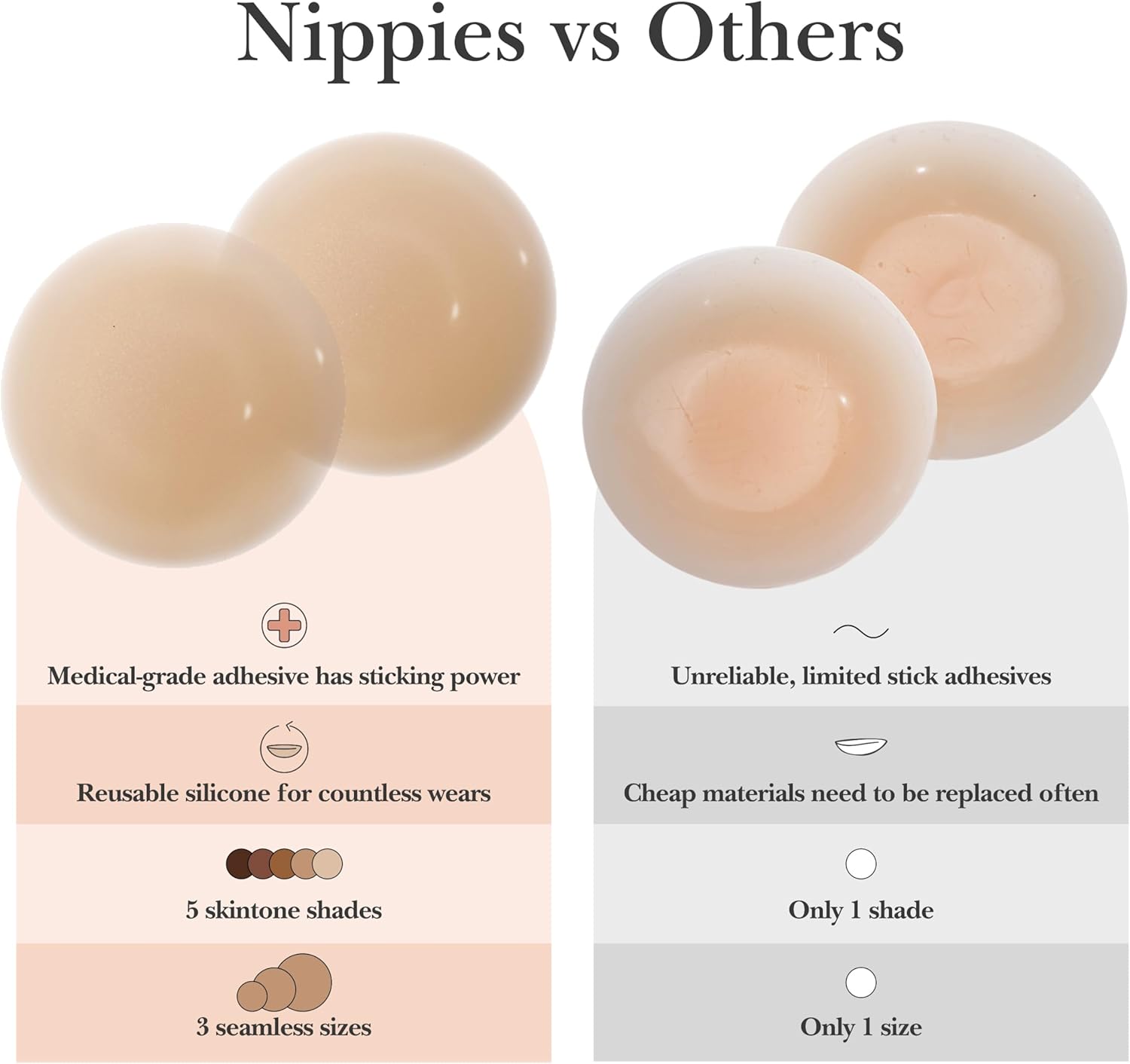 Nippies brystvortebeskyttere til kvinder - klæbende selvklæbende silikone pasties - genanvendelig brystvortebeskytter med rejseæske