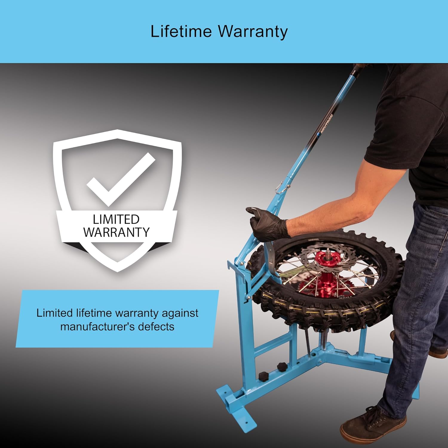 At skifte dæk på din dirt bike kan være en rigtig udfordring, når man prøver at bryde dækkanten og holde hjulet stille ved at arbejde på jorden eller med improviserede stativer. Men det behøver det ikke at være! Neutron Speed Pro Dirt Bike Tire Changer løfter hjulet fra jorden op på en stabil platform og holder hjulet på plads. De dage er forbi, hvor man kæmpede med at bryde dækkanten og fjerne dækket fra hjulet med den indbyggede dækkantbryder. Ikke-mærkende skydeklodser hjælper med at beskytte fælge og eger mod unødvendig slitage. Speed Pro er designet til mousseindsatser, men er også fremragende til at gøre slangeudskiftninger nemme. Den kan justeres til at arbejde på hjul fra 12 til 21 tommer og større. Montering og afmontering går hurtigt, og enheden pakkes ned i den medfølgende 10 x 8 x 28 tommer transporttaske.