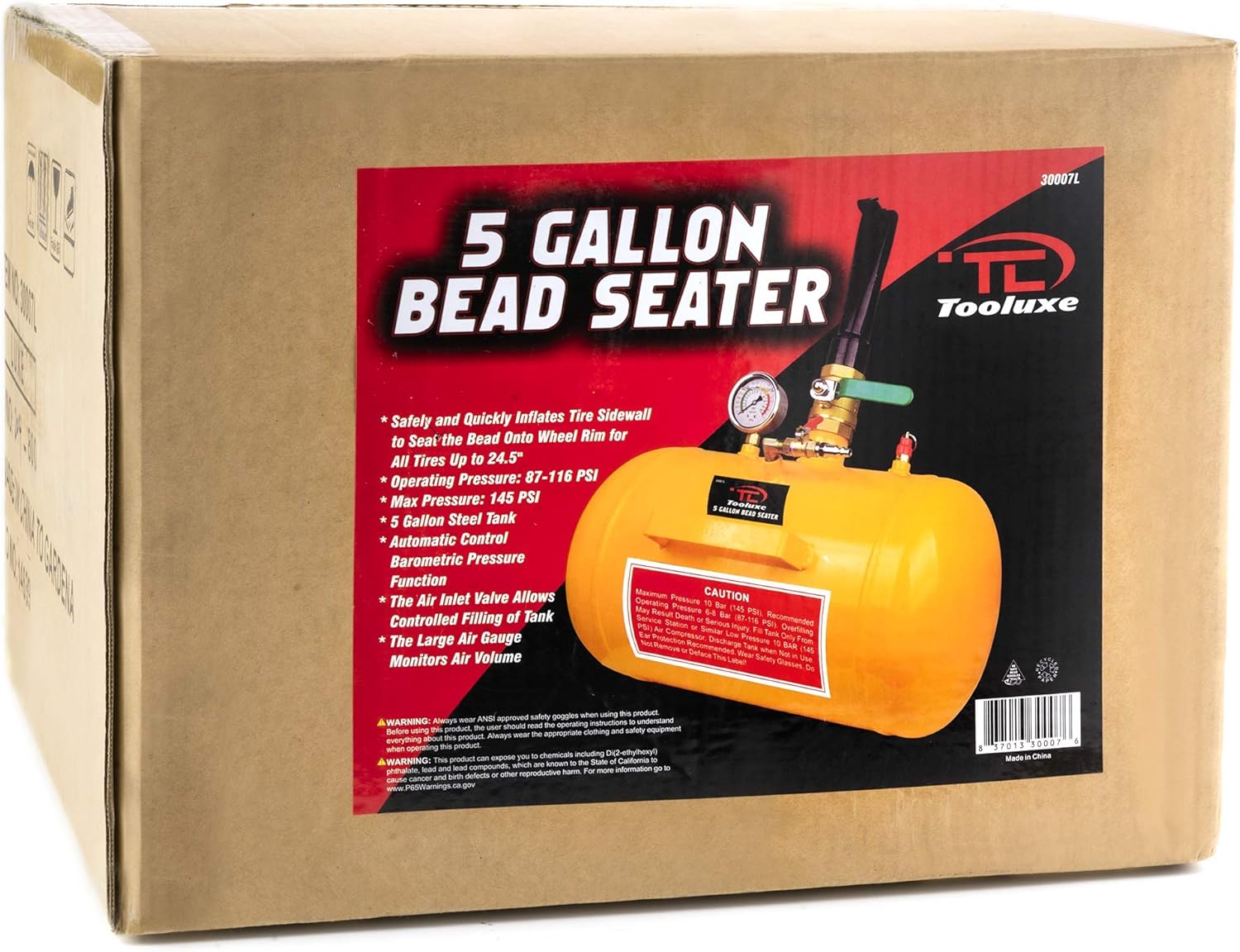 TOOLUXE 30007L Luftdækperleforsegler, 5 Gallon dækperleforsegler til dæk, 145 Max PSI dækperleblæser, 87-116 PSI driftstryk luftkanon