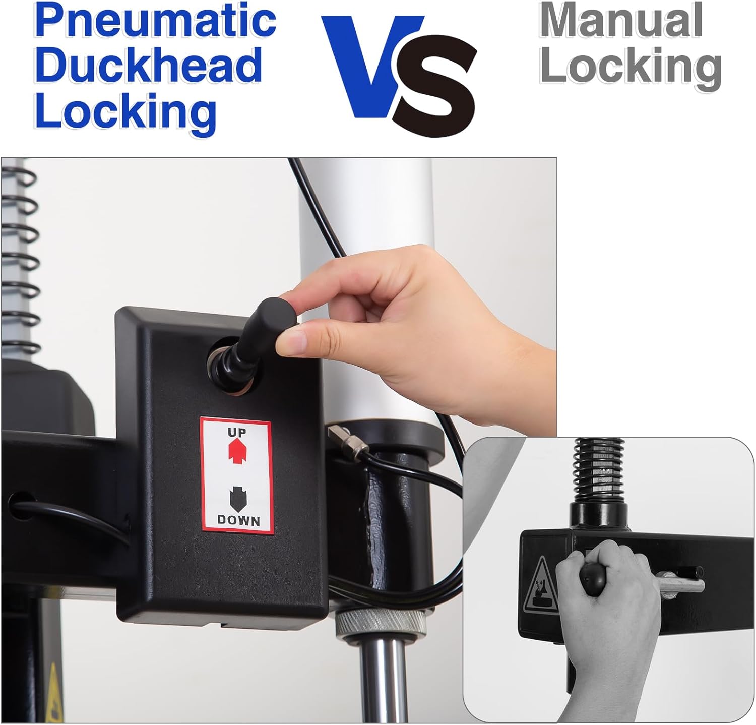 - Air Bead Blaster - Air Bead Blaster-funktion er inkluderet i maskinen. Bead-breaker kraft (10 bar): 2700 kg. Maks. oppustningstryk 3,5 bar (50 psi). Pneumatisk stempel inkluderer bead blast luftblæsning på armkolonnen, driftstryk 120-145 psi (8-10 bar), hurtig oppustning (Bead Blaster) og luftreservetank.