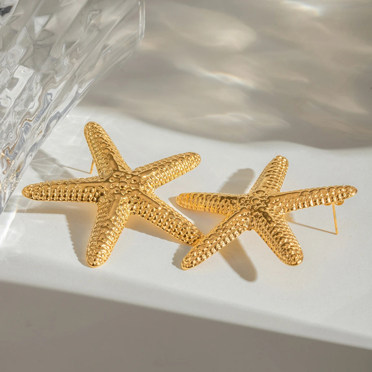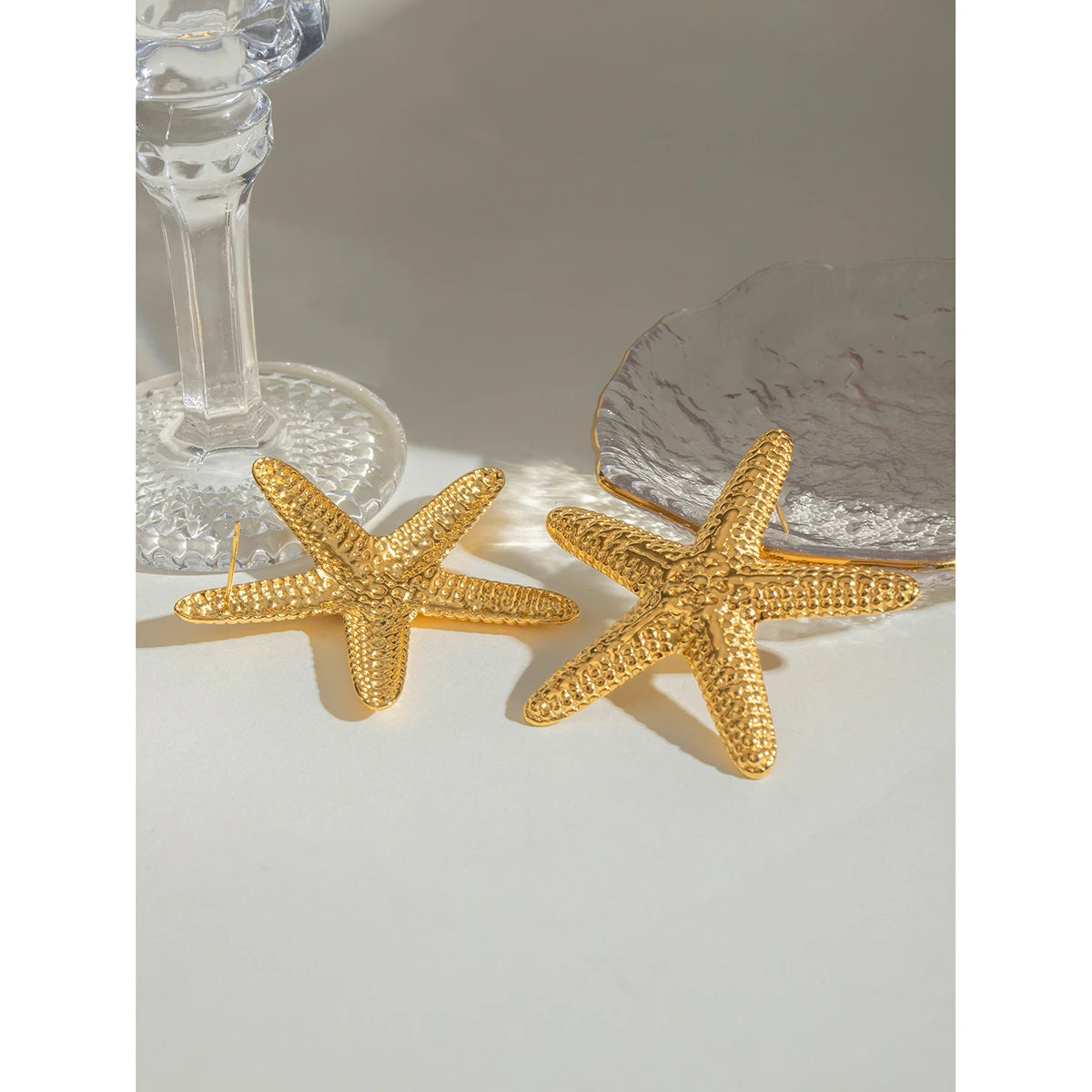 18K forgyldt rustfrit stål Hammer Korn Stjerne Hav Øreringe - Klassisk smykke til kvinder