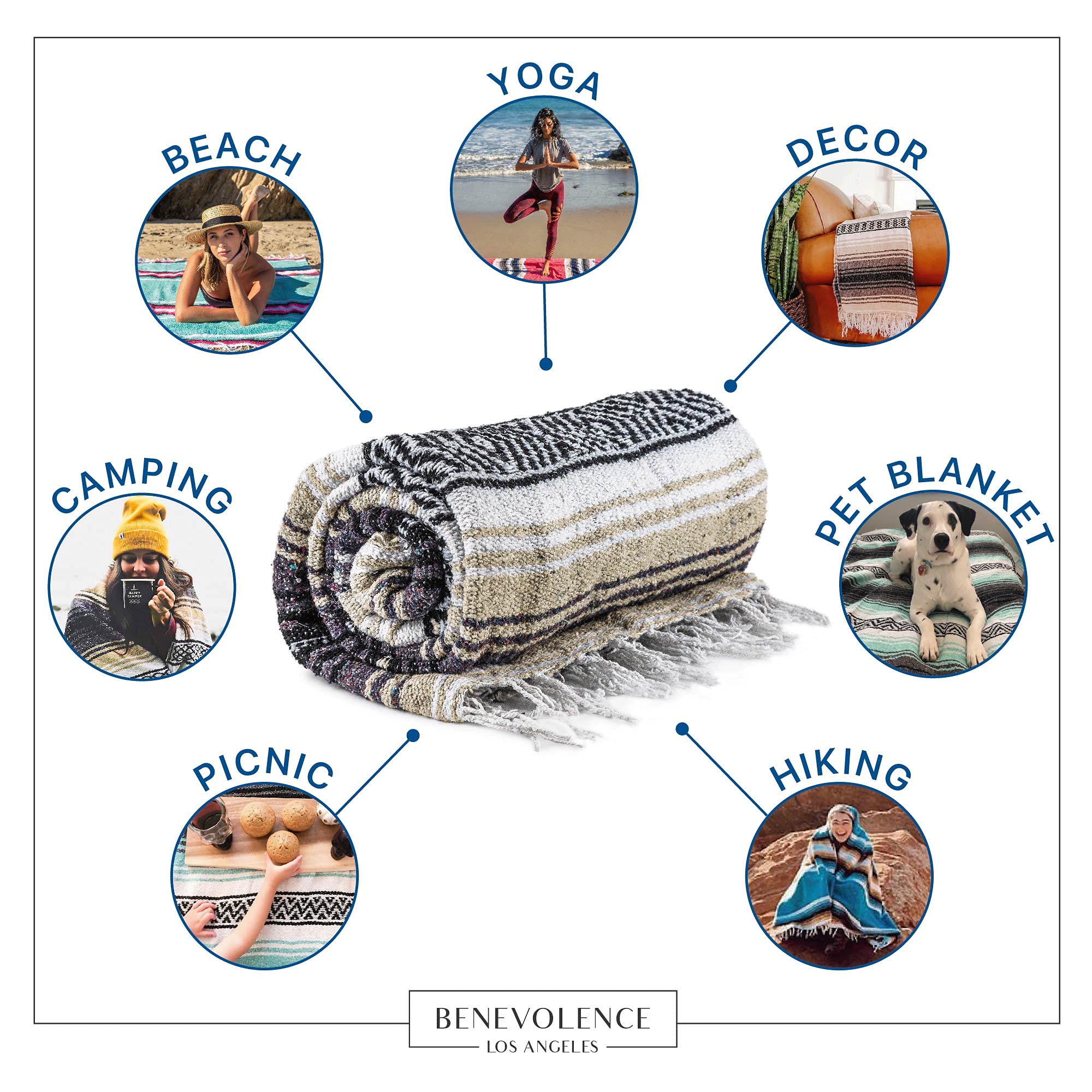 - ALSIDIG & STILFULDT: Perfekt til alle eventyr, disse mexicanske tæpper er dit foretrukne tæppe til yoga, picnic, lange sommeraftener, park-tæppe, sommertæppe eller til at putte sig i, mens du slapper af derhjemme!