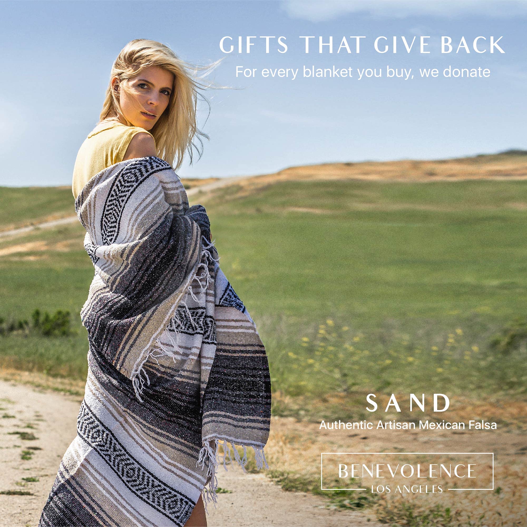 Velgørenhed LA Autentisk Håndvævet Mexicansk Tæppe | Yoga tæpper, udendørs, picnic, strand, camping | Ridesadel | Serape 50x70 tommer - Sand, Pakke med 1