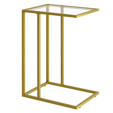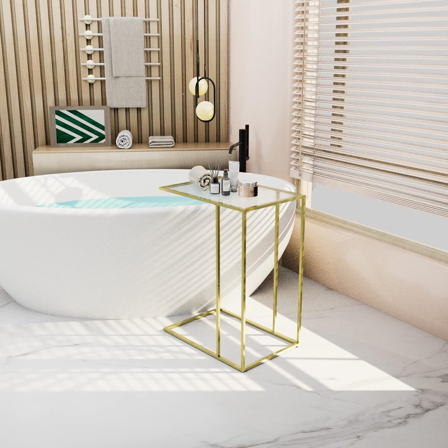 C-formet endebord sæt med 2, sofa bord til små rum, hærdet glas snackbord med metalramme til stue, soveværelse, sengebord, moderne stil, guld