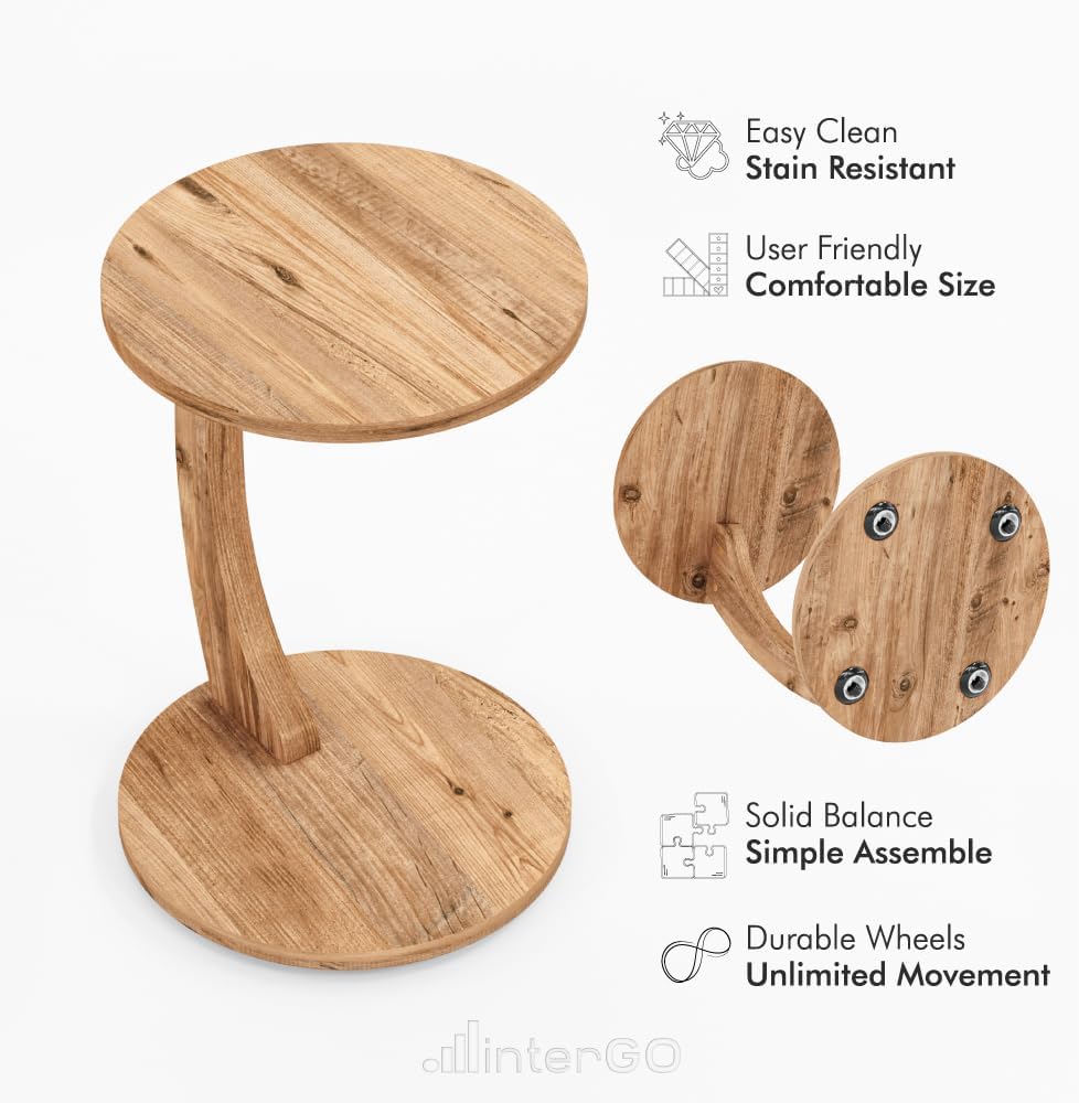 C-formet rundt endebord med hjul - C-type - sidebord moderne design