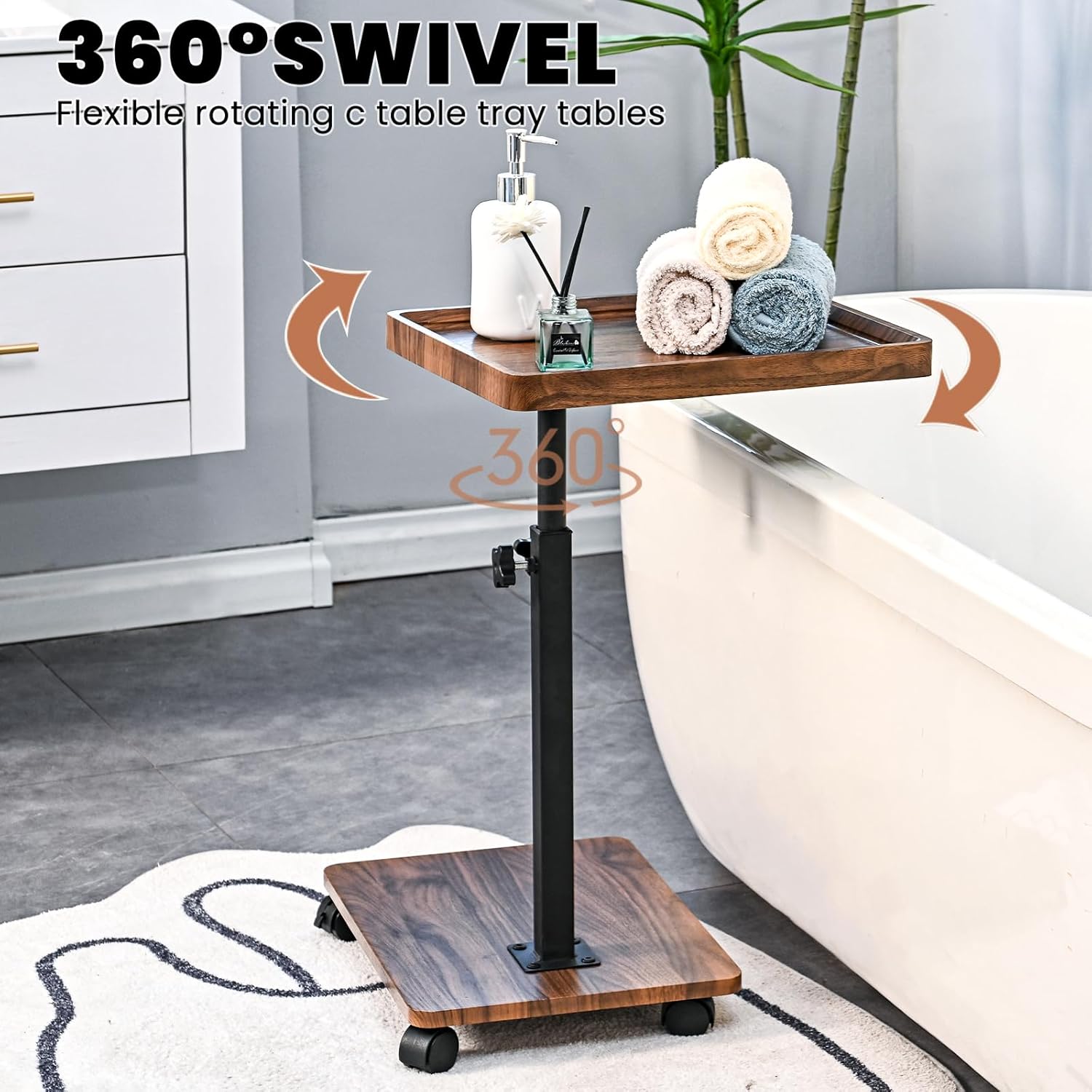 C-bord Endebord Justerbar Højde, C-formet Endebord til Sofa, Snackborde, 360° Drejelig TV-bakke Sofabord, Borde der Glider Under, Kaffesidebord til Seng, Stol, Badekar (Sort Farve)