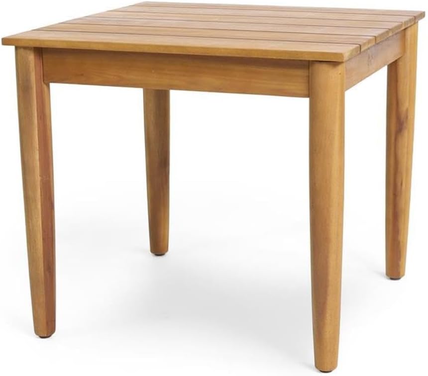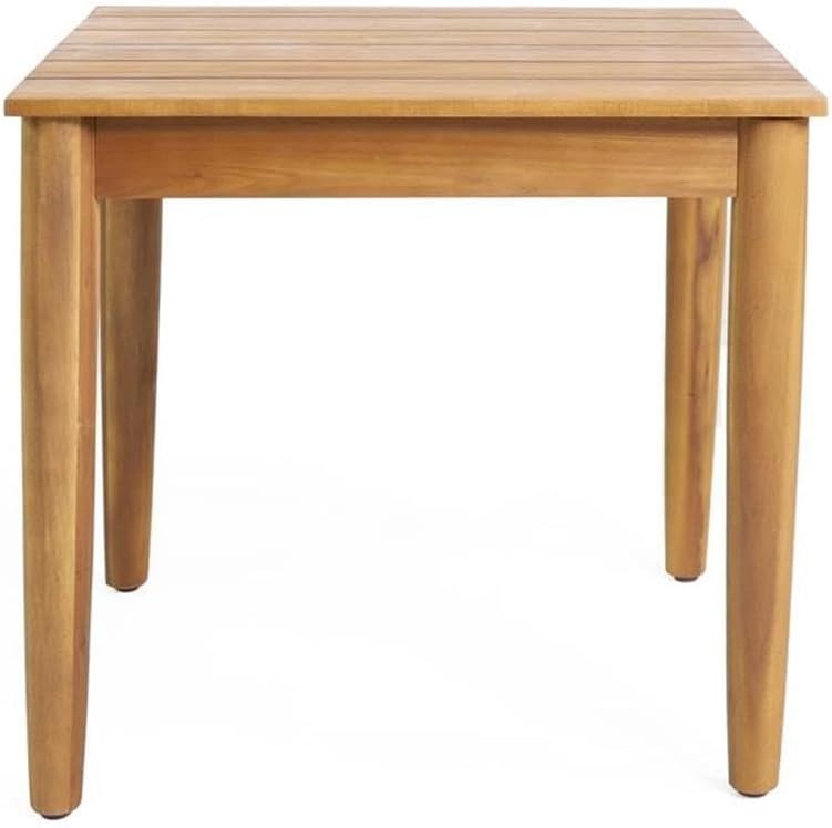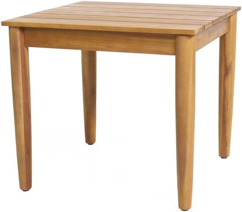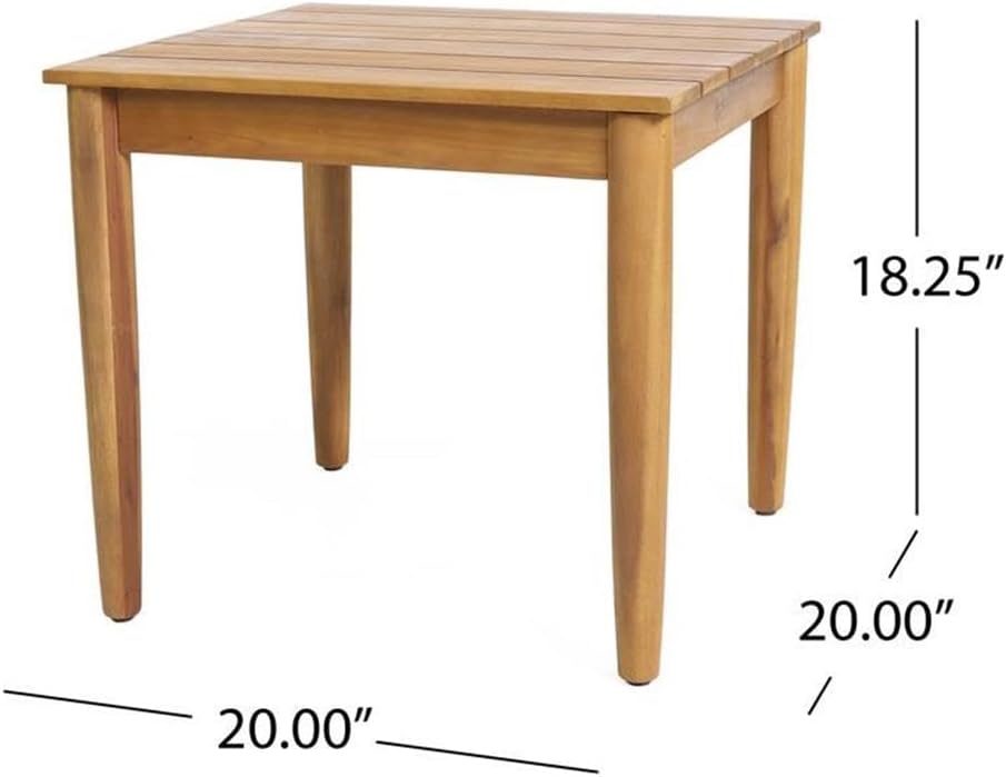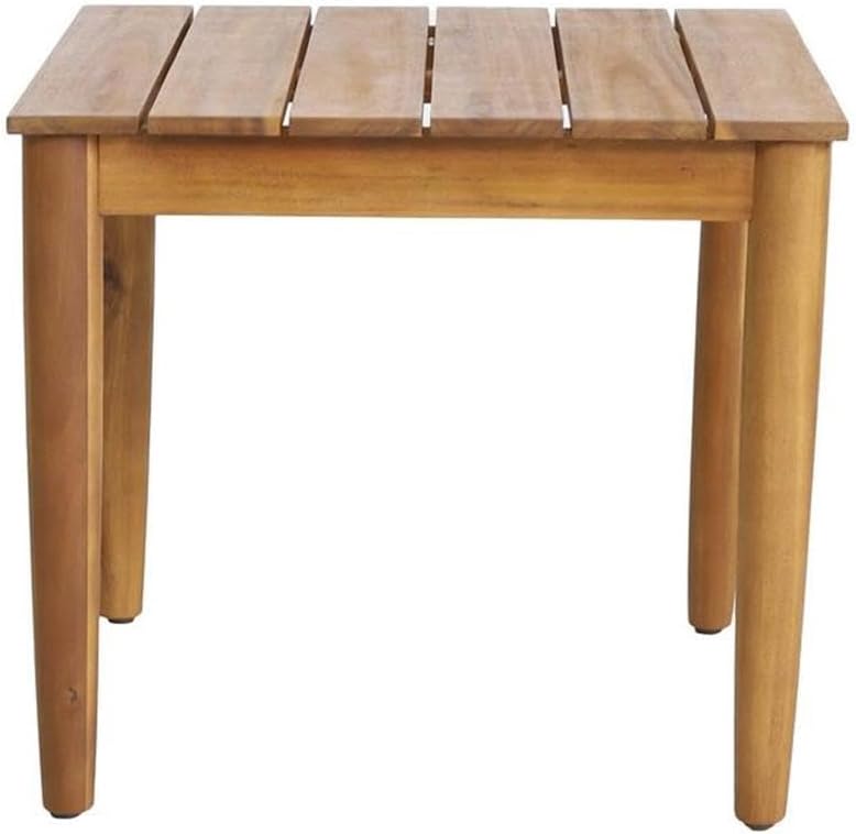 Inkorporer et stilfuldt tilskud til dit udendørs opholdsrum, der vil støtte dine gæstebehov. Med en klassisk firkantet bordplade og smukt tilspidsede ben vil dette stykke helt sikkert give dit udendørs rum en smule ungdommelig fornyelse. Håndlavet med kærlighed af akacietræ tilbyder dette bord din baghave et rigt naturligt udseende, der er perfekt til at holde kolde drikke eller en bakke med snacks. Vores sidebord er færdiggjort med en lamelbordplade, hvilket gør det ideelt til din terrasse, dæk eller ethvert andet område, der trænger til noget nyt. Inkluderer: Ét (1) sidebord Materiale: Akacietræ Finish: Teak Håndlavede detaljer Samling påkrævet Mål: 20,00 tommer dyb x 20,00 tommer bred x 18,25 tommer høj
