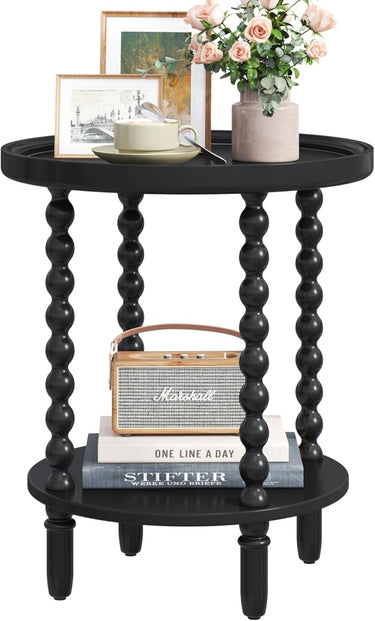 Gadroad rundt endebord med opbevaringshylde, 2-etagers sofabord, træ kaffebord til stue, soveværelse, sort 19.3 * 19.3 * 25.6 inches