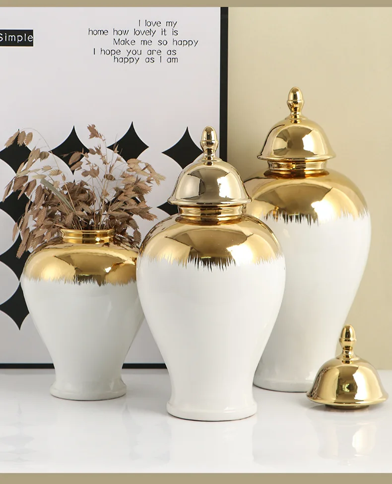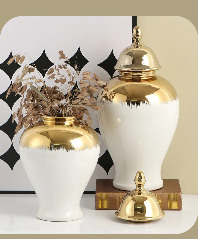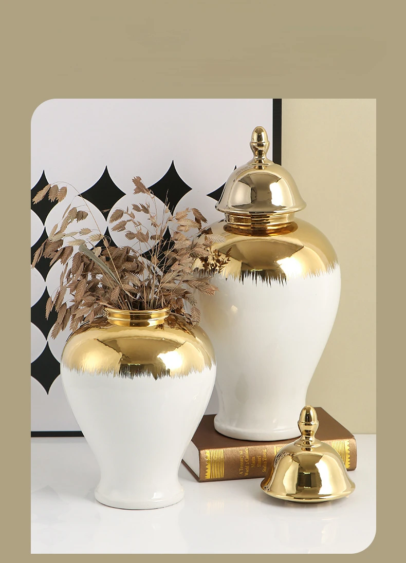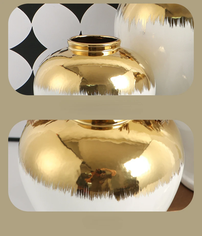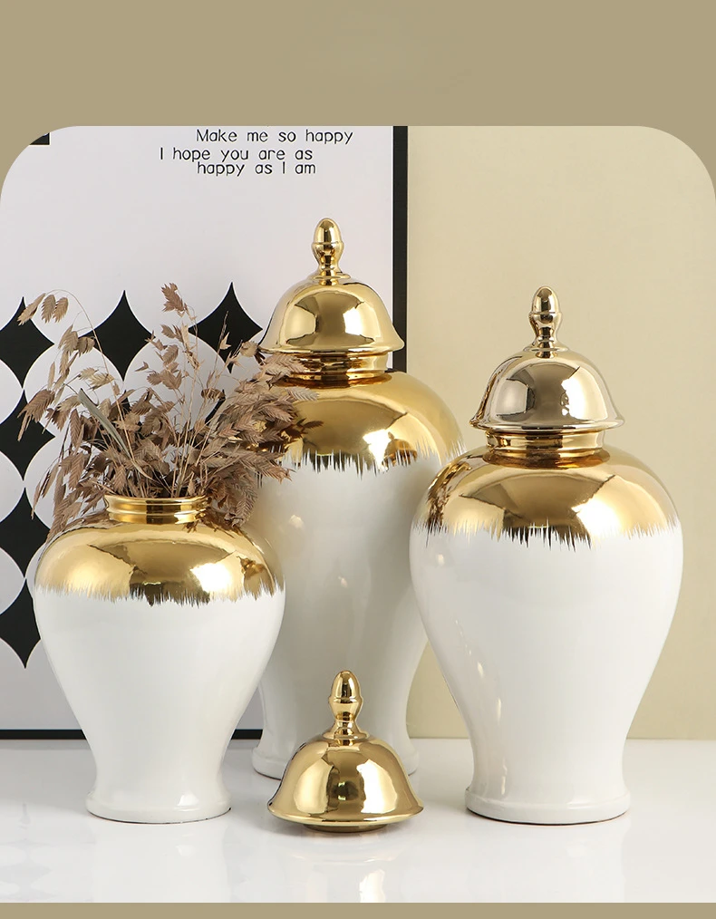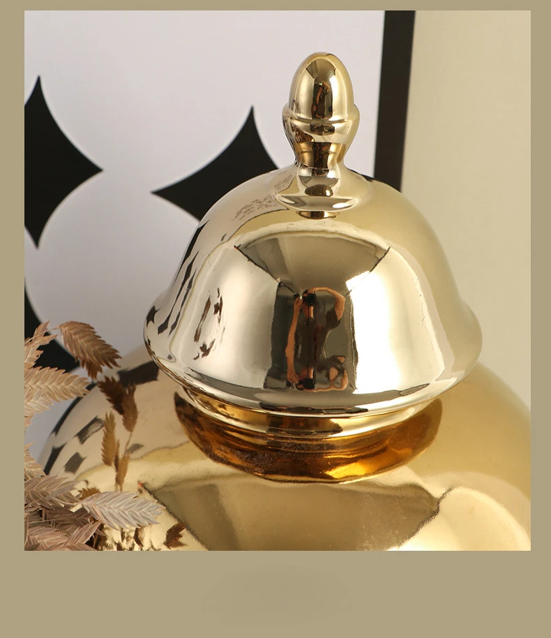 Gyldne skakmatkrukke Keramisk ingefærkrukke Opbevaringstank Blomstervase Porcelæn Dekorativt kunsthåndværk Tilbehør til boligindretning